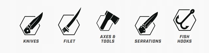 Prowadnice o nastawach 20 i 25° są przeznaczone do ostrzenia noży myśliwskich, edc oraz noży do filetowania. To proste rozwiązanie, w znacznym stopniu ułatwia ostrzenie noży z każdym rodzajem ostrza (płaskim, zakrzywionym, ząbkowanym), a także narzędzi obozowych: siekier, toporków, maczet itp.