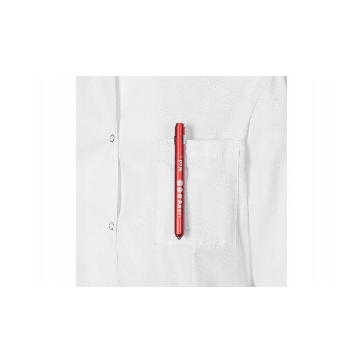 Latarka Długopisowa MACTRONIC Medlite - to poręczna, specjalistyczna latarka długopisowa, która może stać się jednym z podstawowych narzędzi medycznych. Pojedyncza dioda LED generuje neutralnej barwy, skupione światło o temperaturze 4000 K oraz mocy 10 lumenów. Latarkę MedLite wyposażono w metalowy klips mocujący, a waga, kształt i rozmiary jej obudowy nie odbiegają od tradycyjnego długopisu. Trwała, aluminiowa obudowa posiada odporność na upadki z 1,5 metra. Zasilanie stanowią dwie standardowe baterie typu AAA.