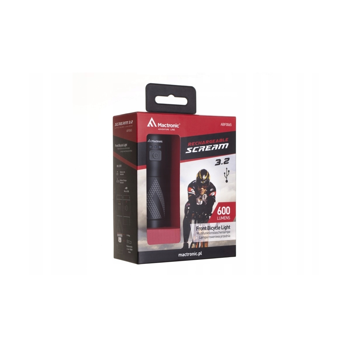 Latarka rowerowa front MACTRONIC SCREAM 3.2 600lm