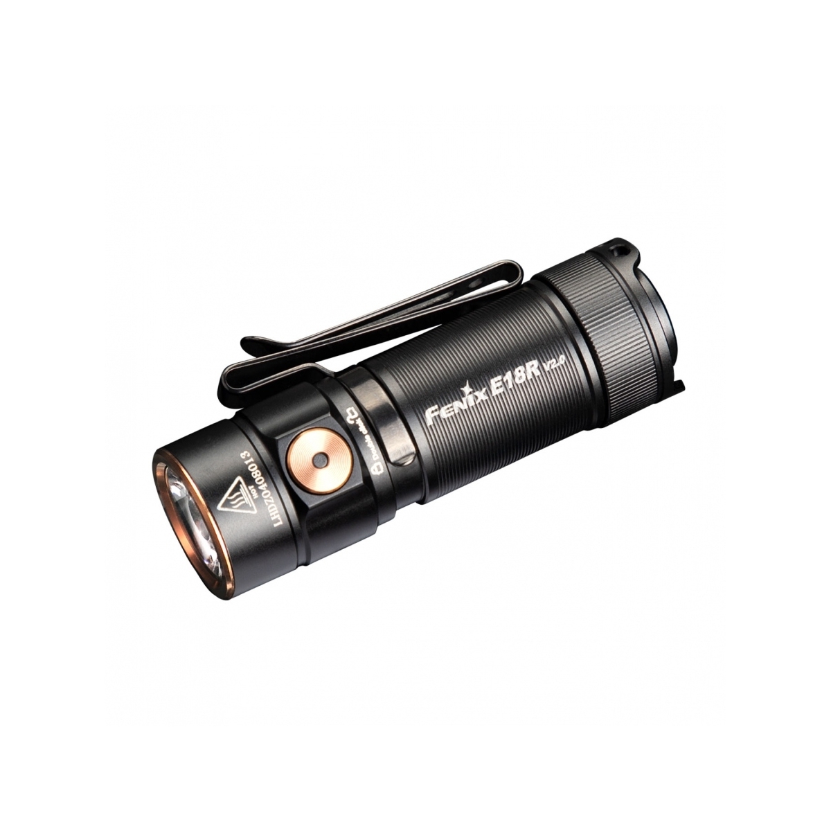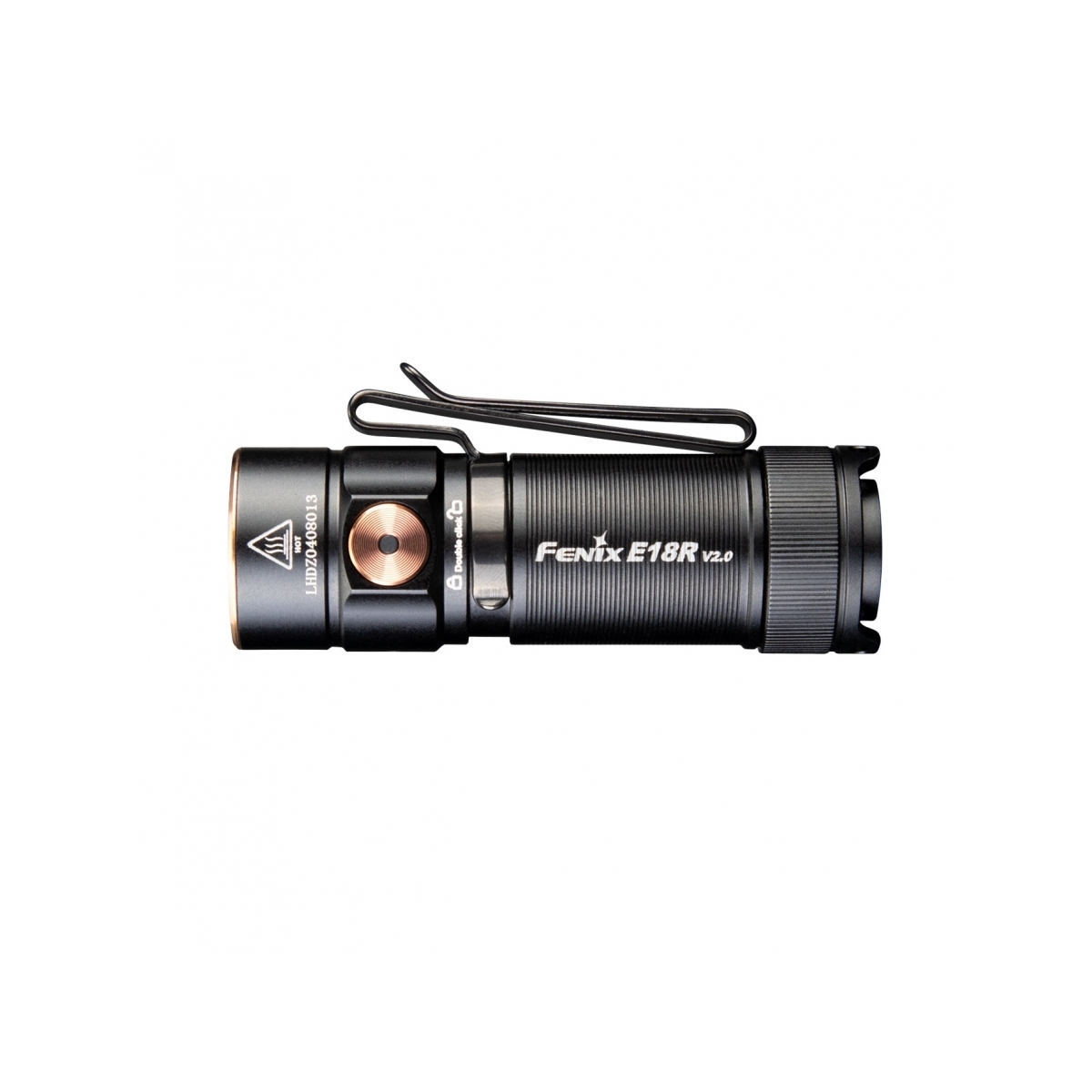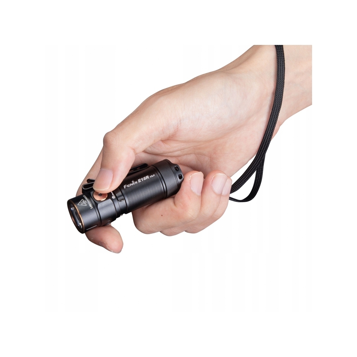 Latarka diodowa Latarka diodowa Fenix E18R V2.0 - model kieszonkowej latarki edc o strumieniu 1200 lumenów, wyposażony w port ładowania USB-C, wskaźnik poziomu akumulatora, blokowany włącznik, dwukierunkowy klips oraz akumulator 16340.