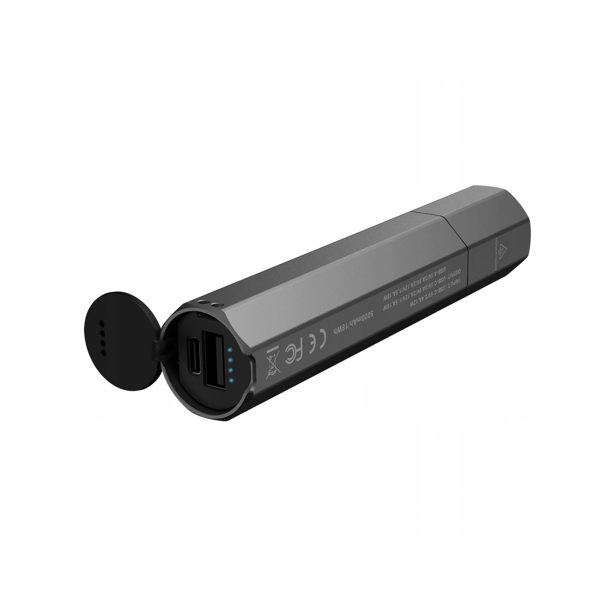Zintegrowany powerbank o pojemności 5000 mAh.