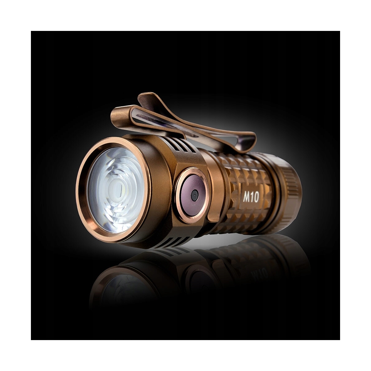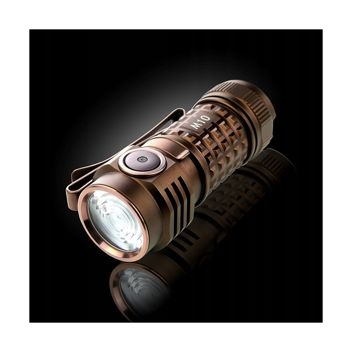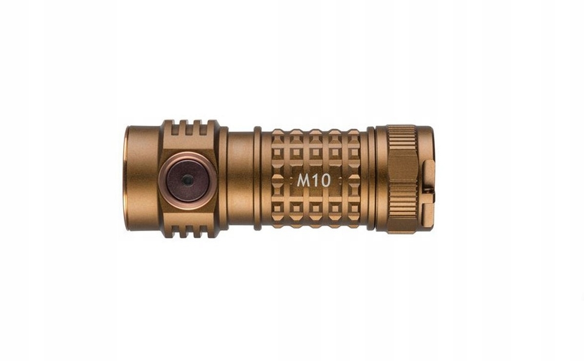 - Latarka zamknięta jest w eleganckiej, brązowej obudowie (coyote brown) z radełkowaniem poprawiającym chwyt brudnymi dłońmi lub w rękawicach.
