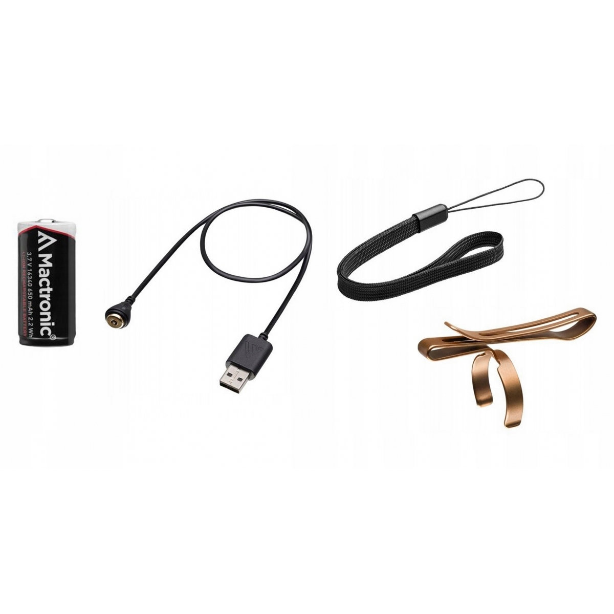 - Dodatkowo w zestawie, otrzymujemy klips do montażu na elementach odzieży i wyposażenia, smycz na rękę, oraz przewód magnetyczny do ładowania. A wbudowany magnes pozwala zamocować latarkę na metalowej powierzchni.