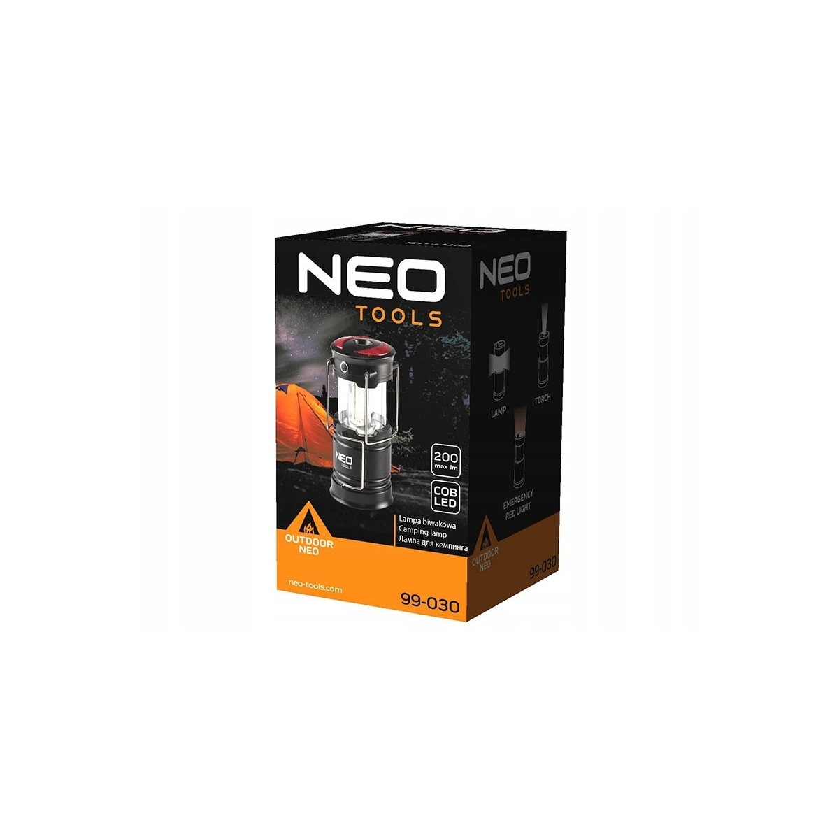 Latarka Lampa kempingowa NEO TOOLS 200lm - to produkt 3 w 1 - lampa, latarka i lampa ostrzegawcza.