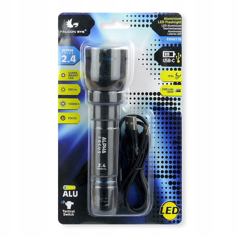 Latarka ładowalna Falcon Eye ALPHA 2.4 500lm USB-C