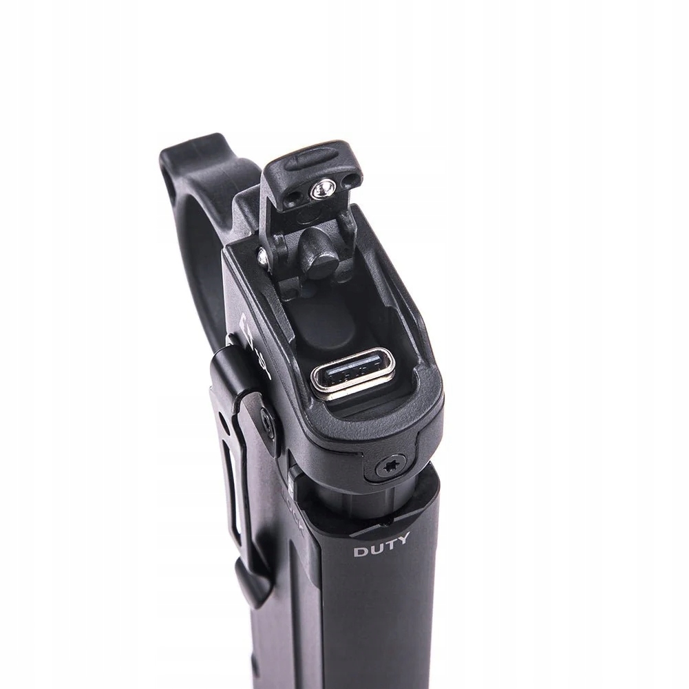Latarka posiada dwustopniowy włącznik z funkcją One-Step-Strobe oraz obrotowy selektor trybu pracy (Tactical/Duty/Lock).