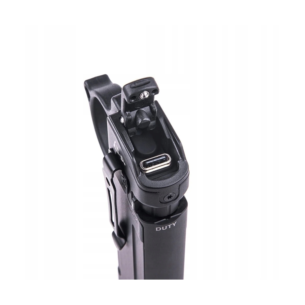 Latarka posiada dwustopniowy włącznik z funkcją One-Step-Strobe oraz obrotowy selektor trybu pracy (Tactical/Duty/Lock).