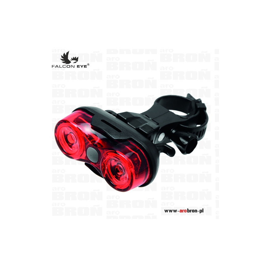 Lampa rowerowa tylna Falcon Eye Magic (FBR0031) - lampa bateryjna świecąca w trzech trybach. Posiada maksymalną moc 50 lm. Szeroka wiązka światła oświeca tył oraz strefę boczna roweru. Sprawia, że Twój rower jest jeszcze lepiej widocznym na drodze. Latarka posiada trzy tryby świecenia: niski (25h), wysoki (15h) oraz migający(50h). Zasilana jest dwoma popularnymi bateriami AAA.