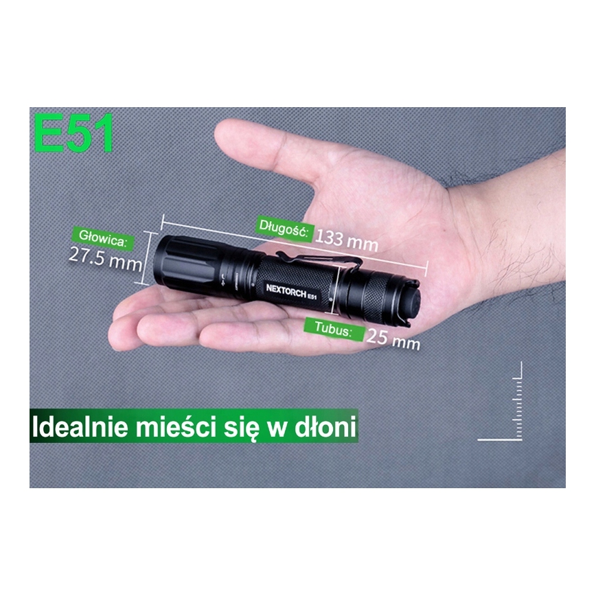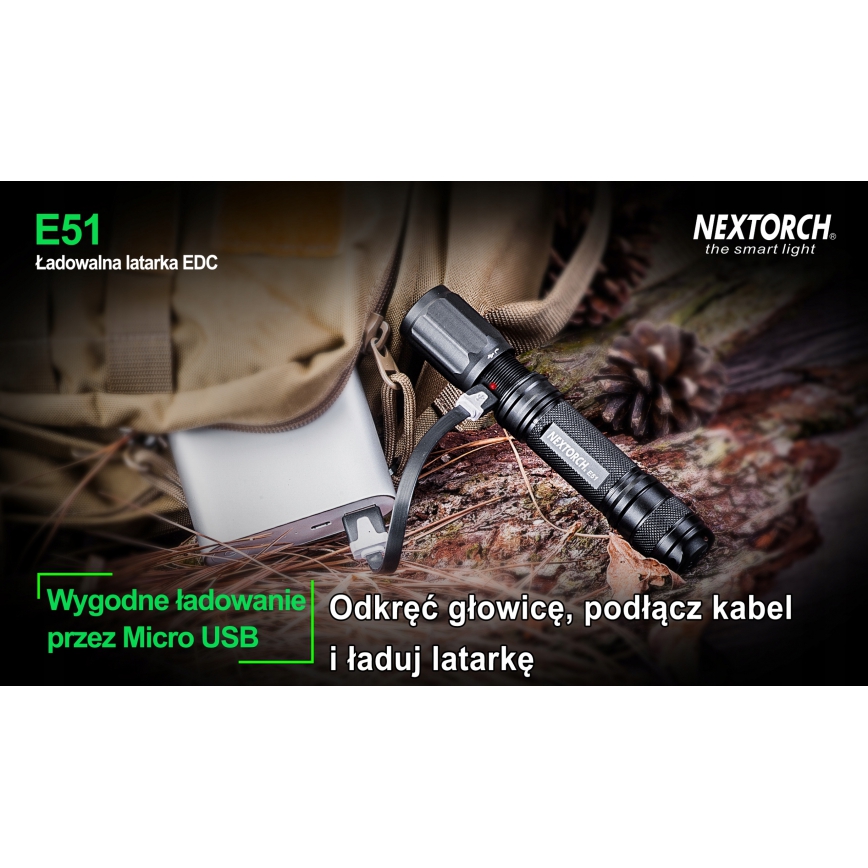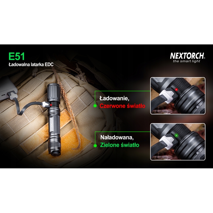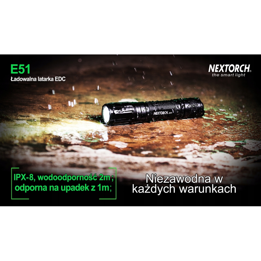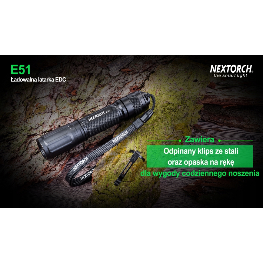 Latarka Nextorch E51 2019- to najnowsza wersja kieszonkowej, mieszczącej się w dłoni latarki, o dużej mocy światła i przeznaczeniu do użytku codziennego .
