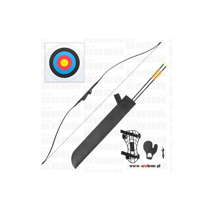 Robin Hood Black - to łuk klasyczny, o sile naciągu do 35 lbs. Polecany jest dla dzieci oraz młodzieży rozpoczynających swą przygodę z łucznictwem. W komplecie znajduje się ochraniacz na przedramię, dwie strzały z włókna szklanego, podstawka pod strzałę, skórka na palce, kołczan, tarcza papierowa.