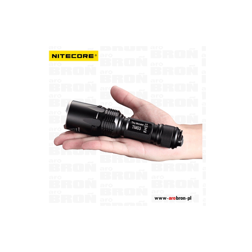 Latarka NITECORE TM03 Tiny Monster - to ręczna latarka o świetnych osiągach i trwałej konstrukcji. Latarka dzięki diodzie CREE XPH70 posiada moc aż 2800 lumenów co pozwala osiągnąc zasięg do 289 metrów. Zaletą latarki jest jej zasilanie za pomocą jednego, dedykowanego specjalnie do TM03 akumulatora 18650 (inne ogniwa typu 18650 nie są zalecane).