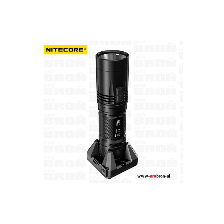 Latarka NITECORE R40 ze stacją ładowania - to silna, ładowalna latarka o mocy 1000 lumenów, świecąca nawet do 1000 godzin, posiadająca w zestawie 2 stacje ładujące.