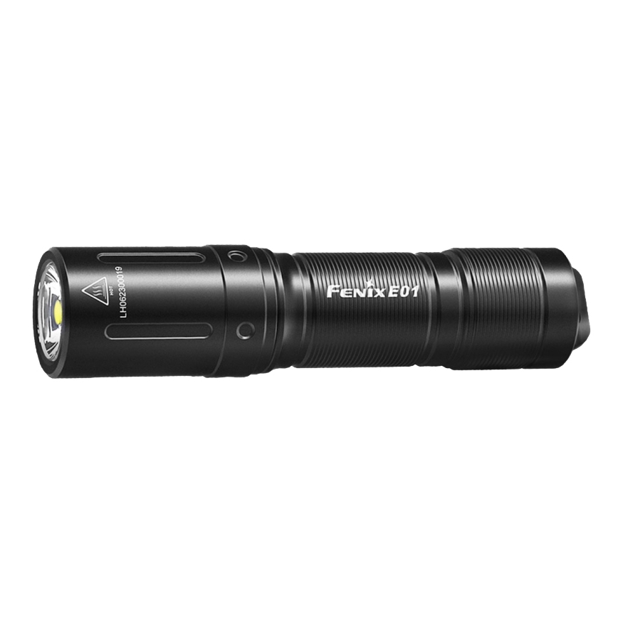 - Źródłem światła jest wydajna dioda Fenix E01 V2.0, która w trybie wysokim emituje strumień 100 lumenów o jasności 304 kandeli i zasięgu 35 m. Światło jest równomiernie i szeroko rozproszone dzięki zastosowaniu ultra cienkiej soczewki kolimacyjnej.