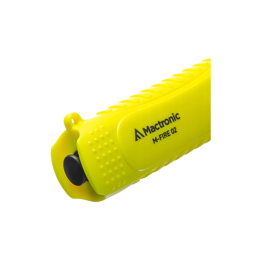 Latarka MACTRONIC M-Fire 02- profesjonalna latarka hełmowa zaprojektowana dla służb ratowniczych. Posiada certyfikat Ex ATEX oraz normę IP67. Latarka odporna jest na upadki z wysokości 1m. Została wyposażona we włącznik magnetyczny oraz zawór uwalniający nadmiar gazów. Korpus został wykonany z wysokiej jakości tworzywa sztucznego, dzięki czemu latarka jest lekka i nie ciąży, gdy jest przymocowana do kasku. Źródło światła, którym jest dioda led Cree XP-E LED, emituje światło o mocy 120 lumenów o zasięgu 172m.