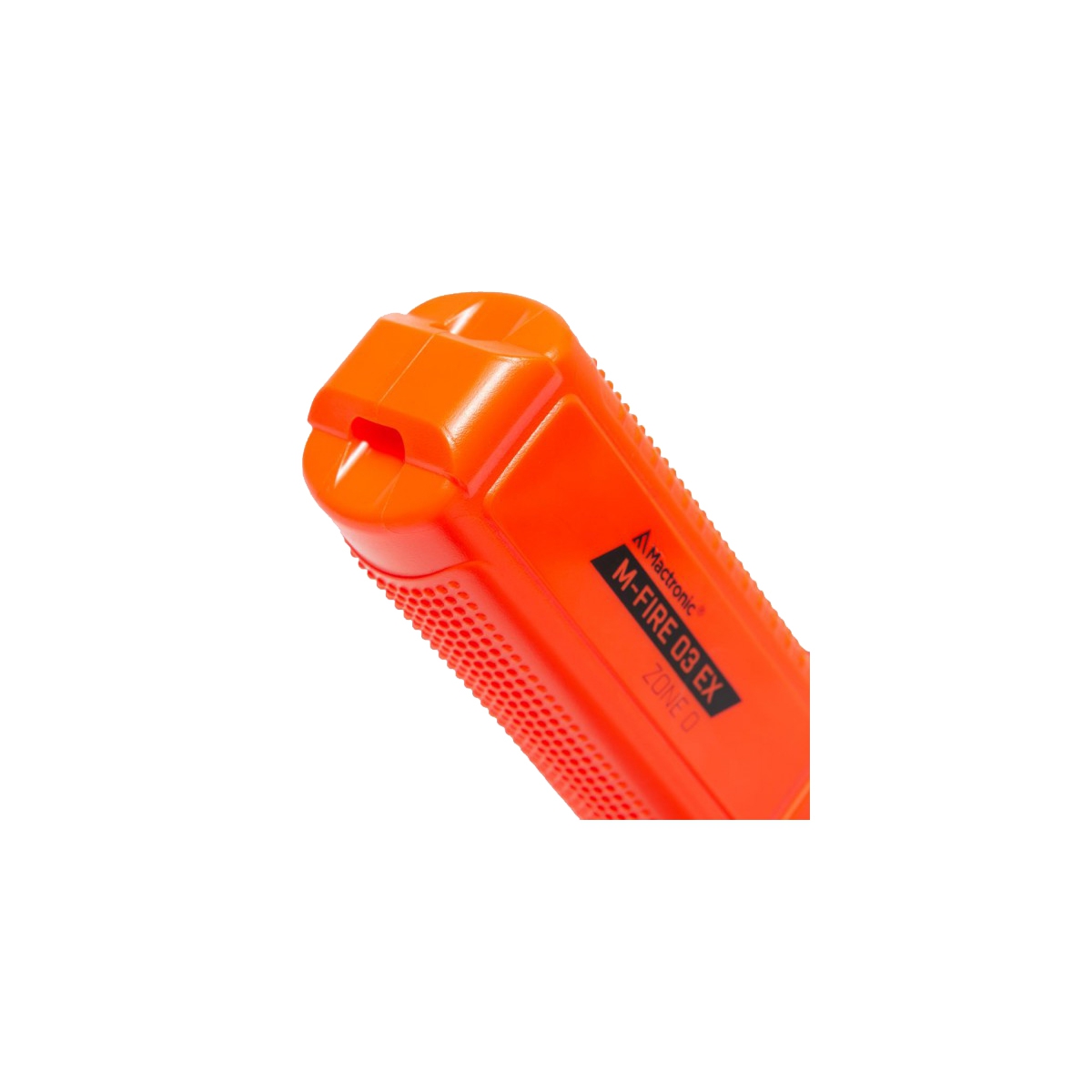 Latarka MACTRONIC M-Fire 03 orange PHH0221 to nowy model profesjonalnej latarki z możliwością montażu na hełmie zaprojektowanej specjalnie dla służb ratowniczych. Uzyskała ona certyfikat EX-ATEX, a także posiada normę wodoodporności IP68 oraz odporność na upadki z wysokości 1m. Pozwala to na użytkowanie jej w niebezpiecznych miejscach podczas akcji ratowniczych.