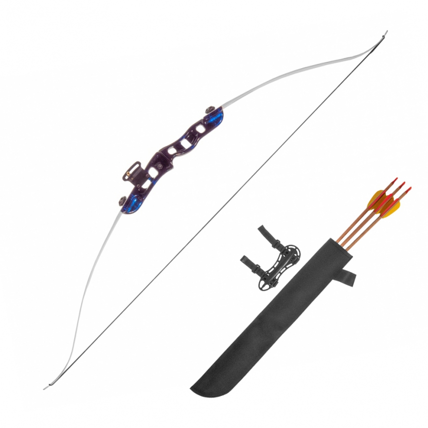 W komplecie znajduje się ochraniacz na przedramię, dwie strzały z włókna szklanego, ochraniacz na ramię, kołczan.