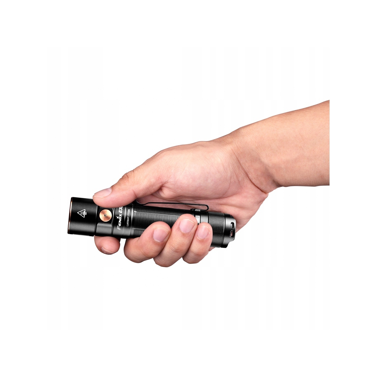 - Z boku korpusu został umieszczony stalowy klips ułatwiający przenoszenie latarki.