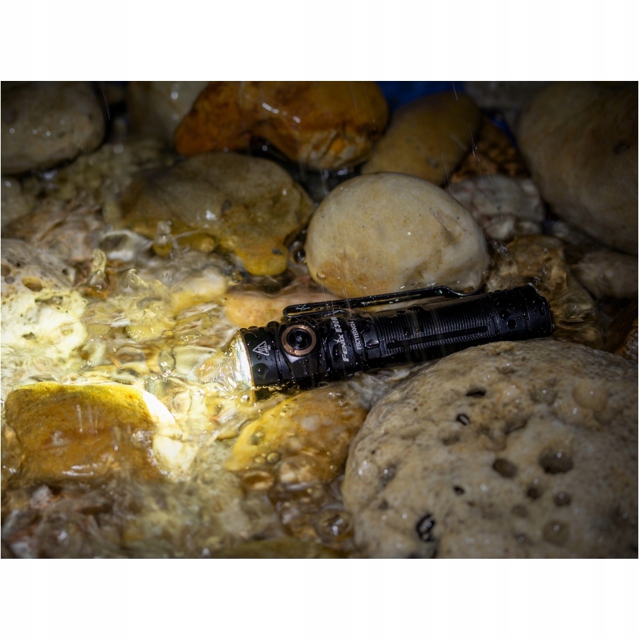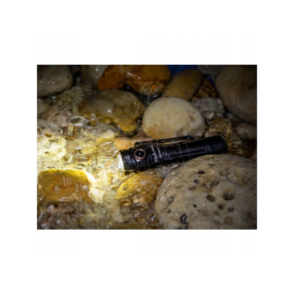 - Klasa wodoodporności IP68 pozwala na zanurzenie latarki w wodzie na głębokość 2 metrów.