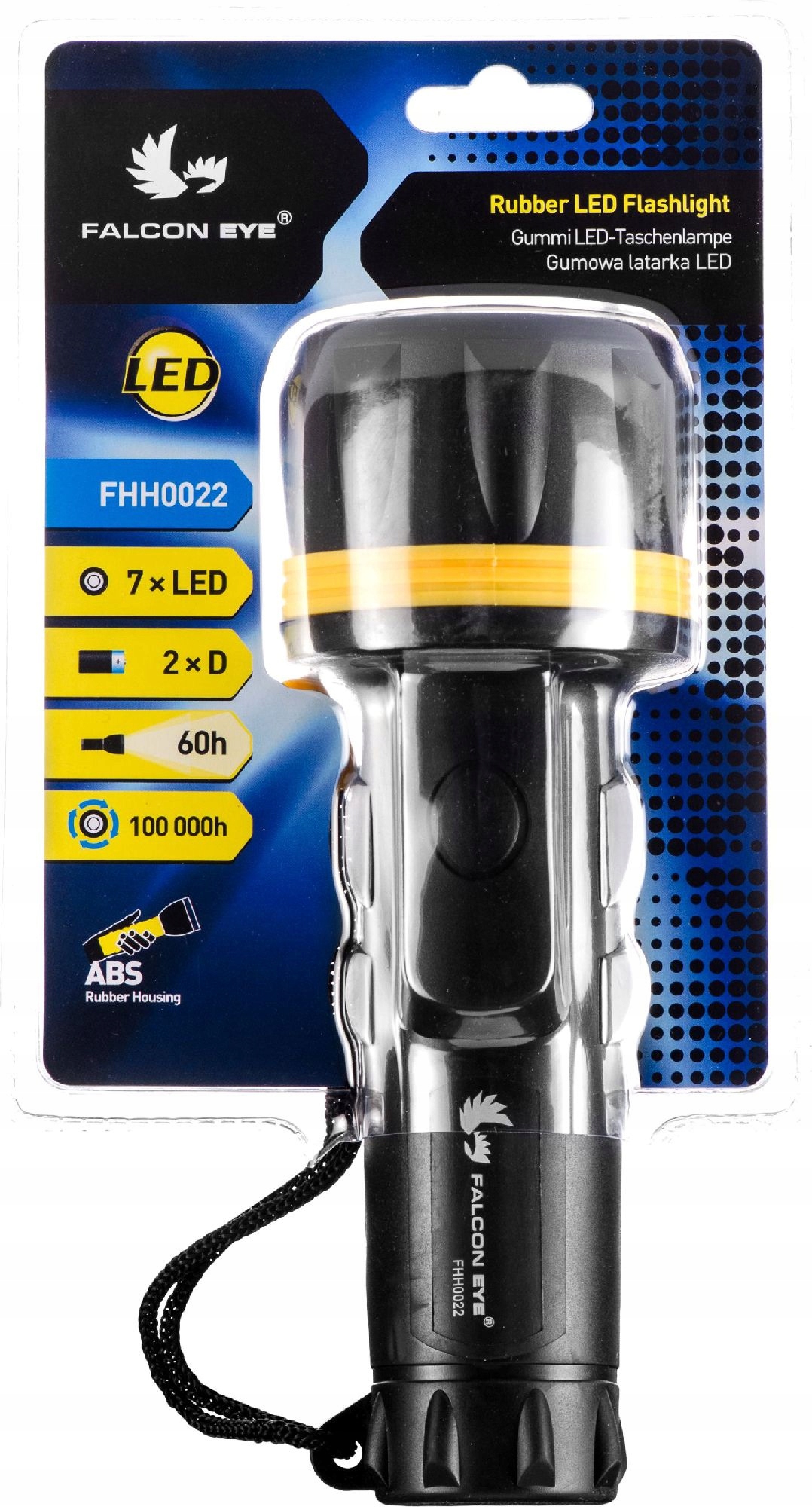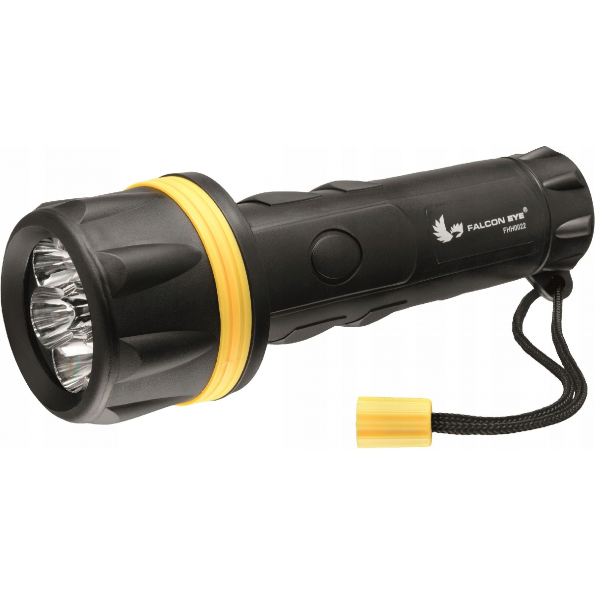 Falcon Eye FHH0022 to uniwersalna latarka ręczna wyposażona w 7 diod LED. Gumowana obudowa ułatwia pewne trzymanie latarki w dłoni.
