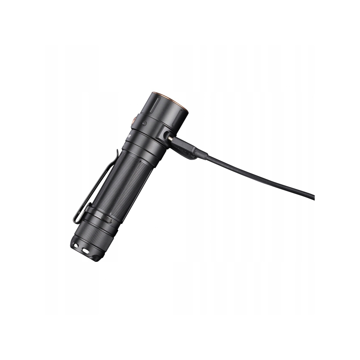 Latarka ma wbudowany port ładowania USB-C, który umożliwia ładowanie akumulatora bez potrzeby korzystania z dodatkowej ładowarki.