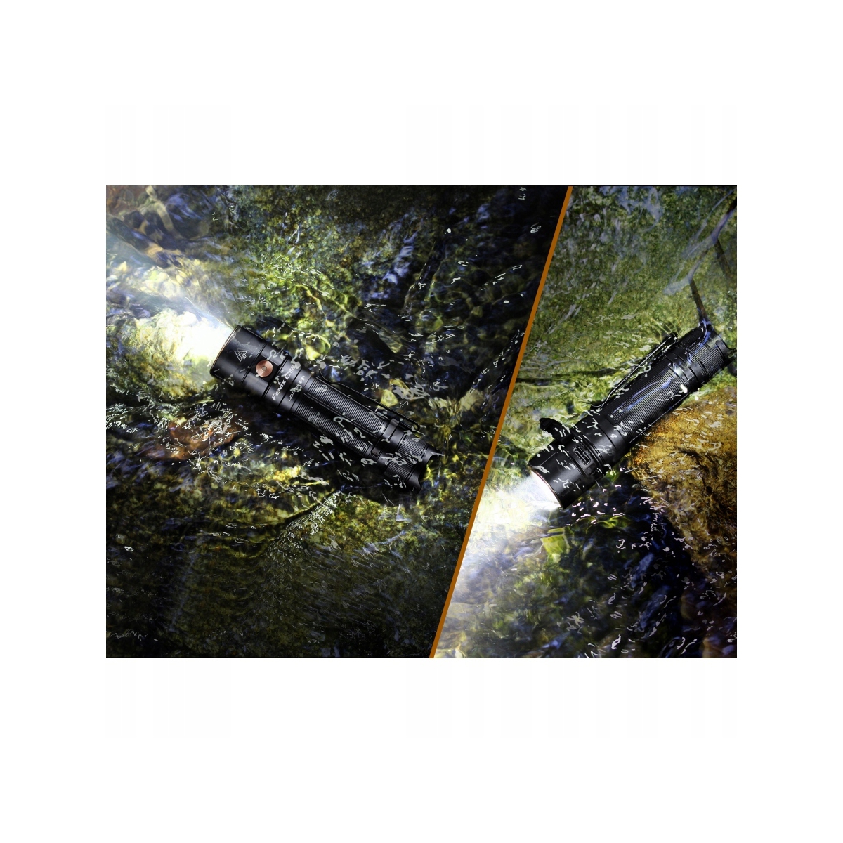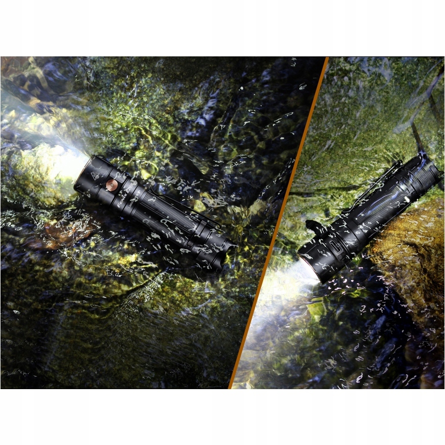- Klasa wodoodporności IP68 pozwala na zanurzenie latarki w wodzie na głębokość 2 metrów.