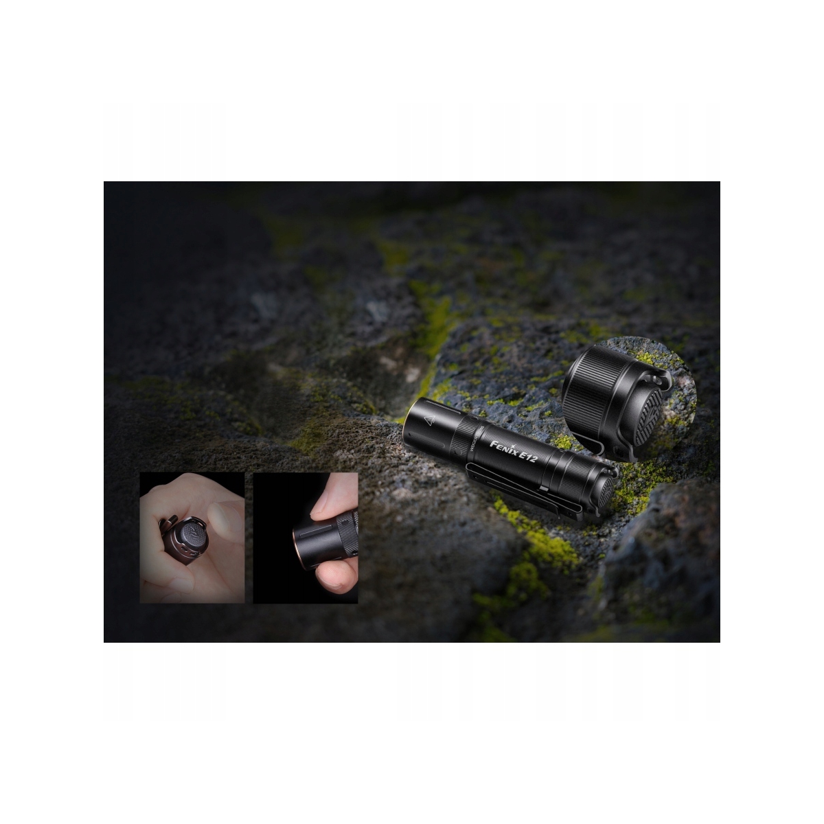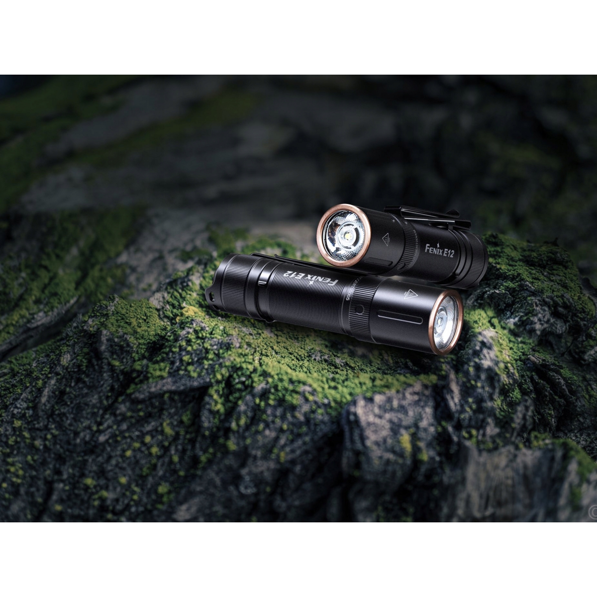 Latarka diodowa Fenix E12 V2.0 - to mała, kieszonkowa latarka do użytku codziennego. E12 V2.0 do obsługi posiada tylny włącznik, ale ma także alternatywny tryb zmiany jasności - obsługiwany za pomocą obrotowej głowicy. Niezależnie od metody, latarkę można wygodnie obsługiwać jedną rękę nawet w całkowitej ciemności.