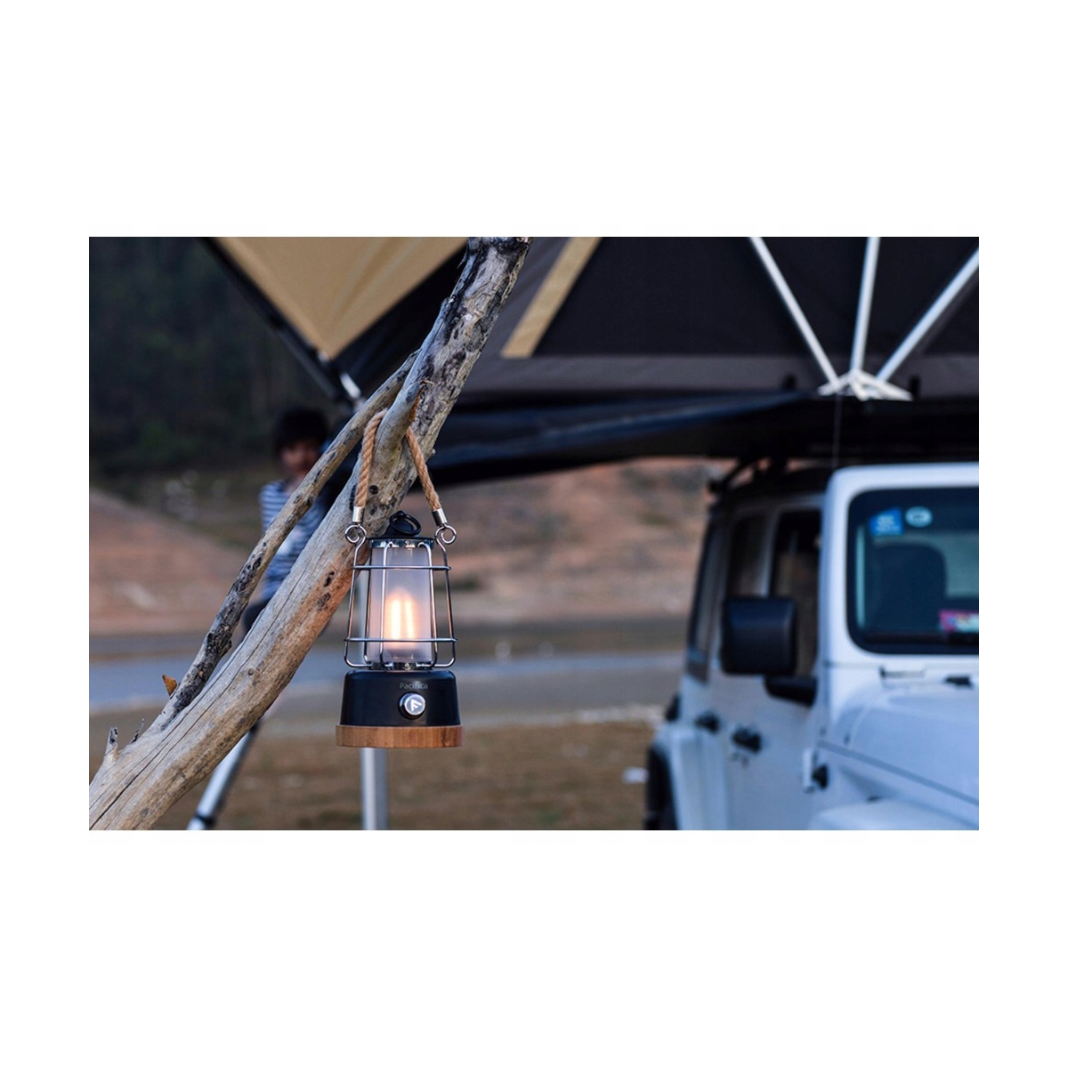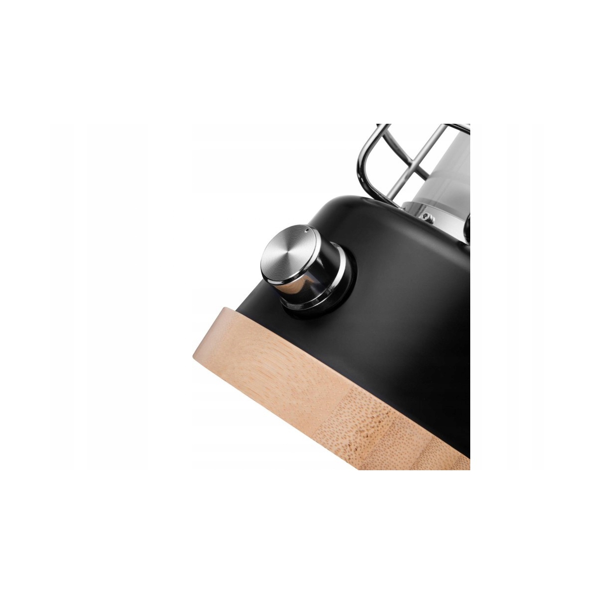 Odkryj ducha niezapomnianych wypraw z dawnych lat. To wszystko dzięki połączeniu klasycznego wzornictwa opartego na czarnej, metalowej obudowie, drewnianej podstawie oraz plecionym sznurze do zawieszenia.