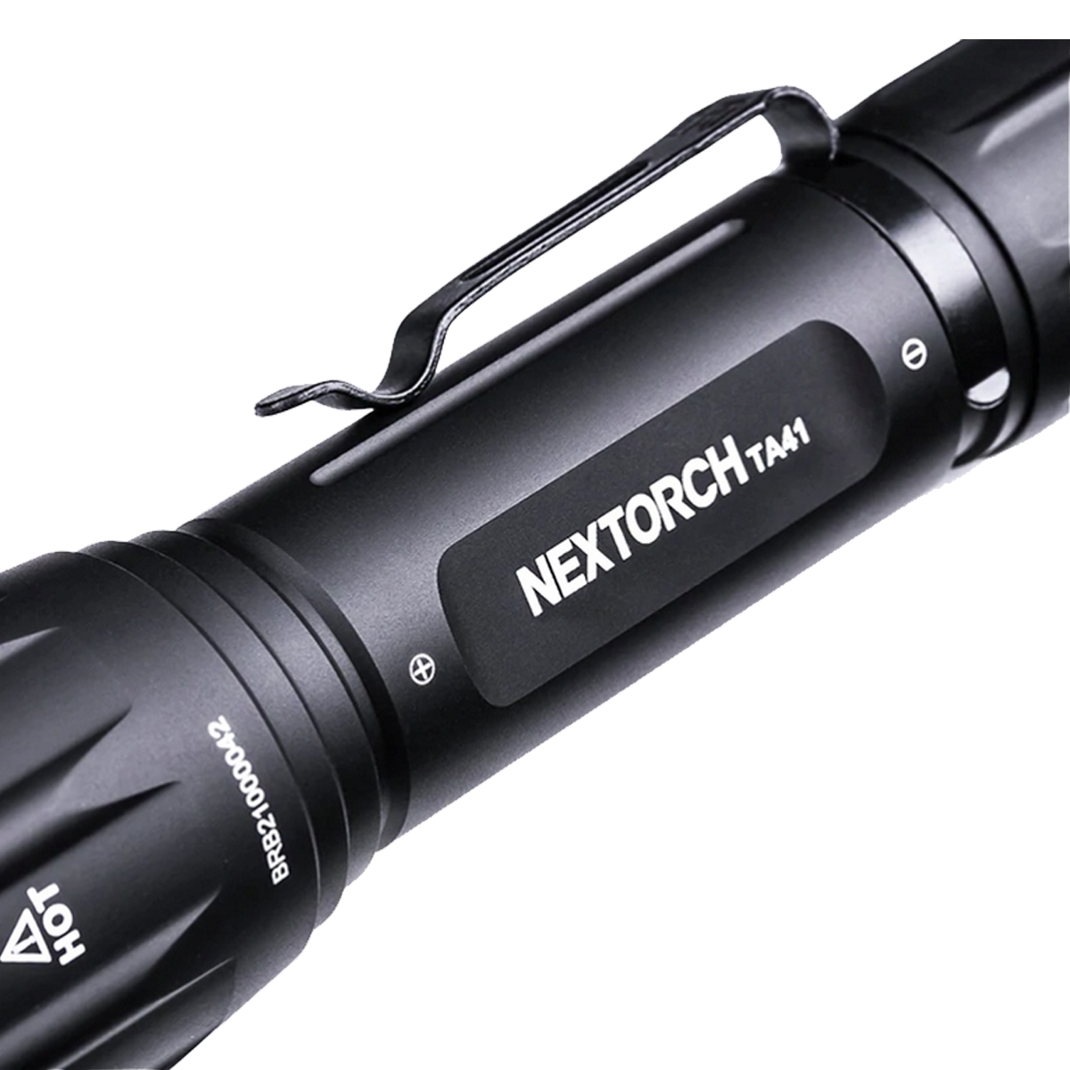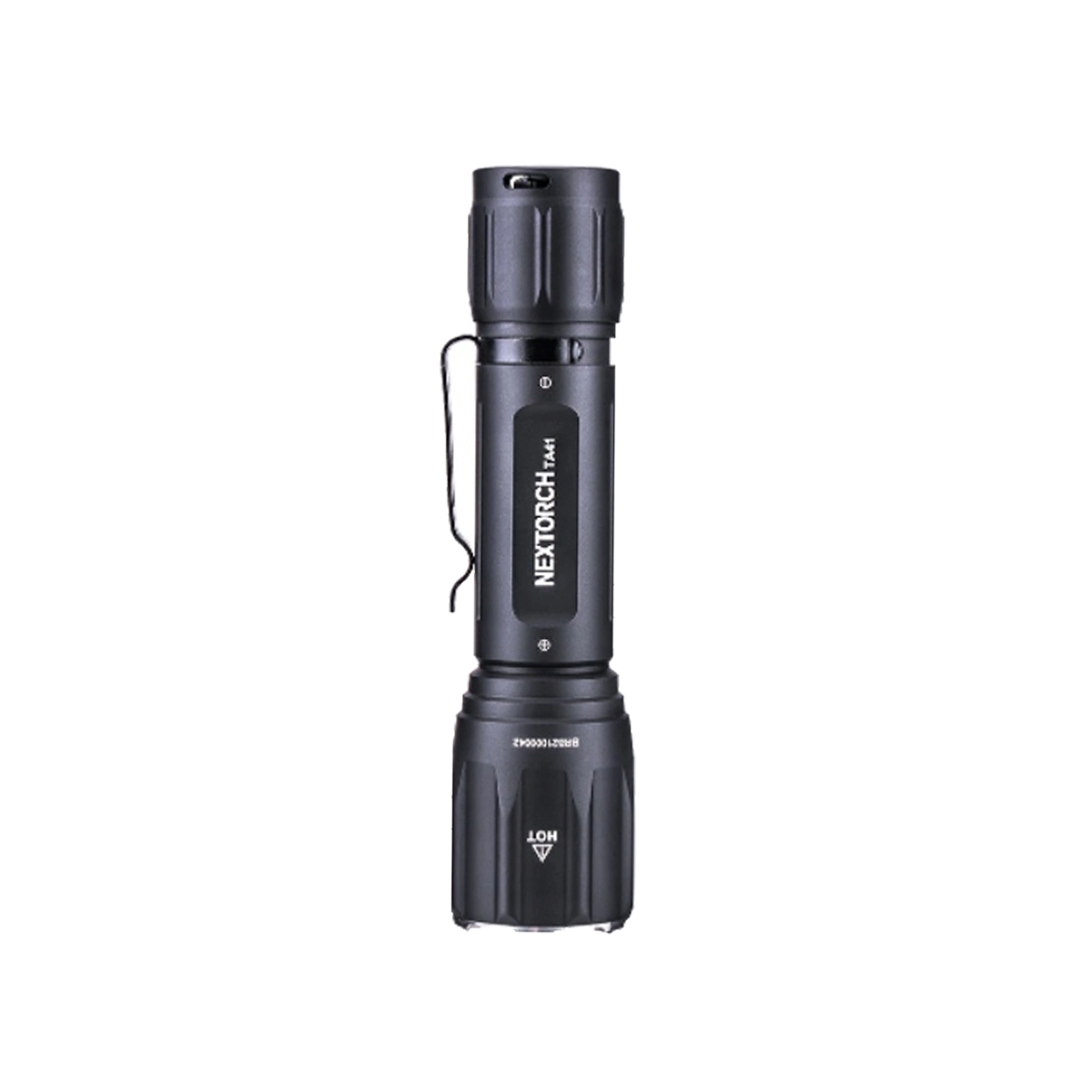 Latarka Nextorch TA41 - to model o zwartej konstrukcji, pancerny. Dzięki zastosowaniu specjalnego stopu aluminium militarnego wytrzymuje najcięższe warunki użytkowania, grubość ścianki tubusu to aż 2,4mm. Spełni oczekiwania najbardziej wymagających użytkowników. Latarka jest wodo- i wstrząsoodporna, spełnia normę IPX8. Korpus o średnicy 1 cala został wykonany ze specjalnego stopu aluminium militarnego charakteryzującego się niesamowitą wytrzymałością. Dodatkowo materiał pokryto trwałą czarną anodyzacją typu III. Zastosowany system antywstrząsowy zapewnia odporność na upadki z wysokości do 2 metrów.