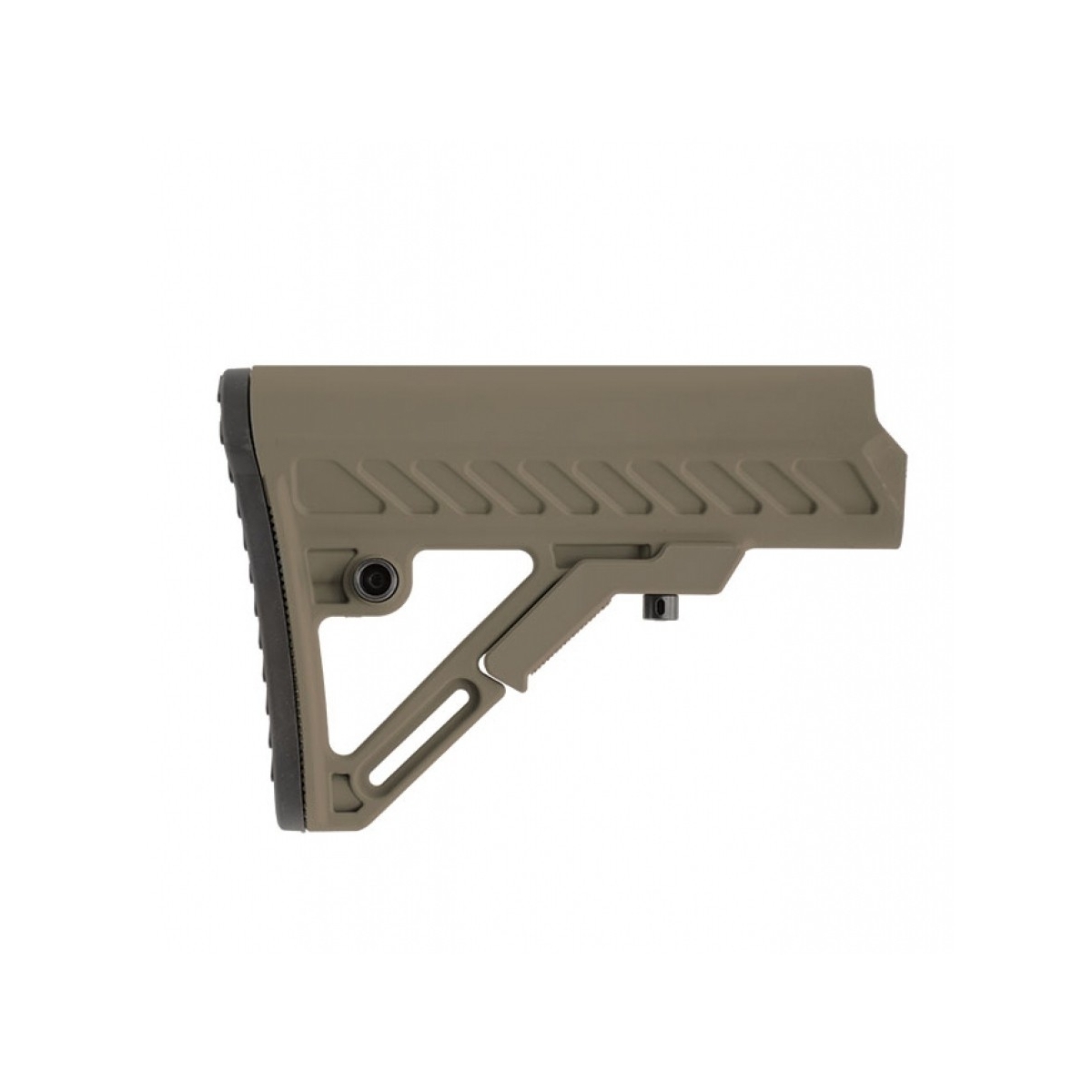 Komfort użytkowania zapewniają agresywnie teksturowana stopka zmniejszająca odczuwanie odrzutu oraz symetrycznie ścięte boki, które zapewniają stabilne i wygodne złożenie do strzału osobom prawo i leworęcznym. Sprężynujący przycisk blokady położenia (6 pozycji) schowano w obrębie szkieletu, co zapobiega jego przypadkowemu wciśnięciu. W tylnej części kolby znajdują się dwustronne gniazdo QD oraz zaczep do mocowania pasa nośnego.