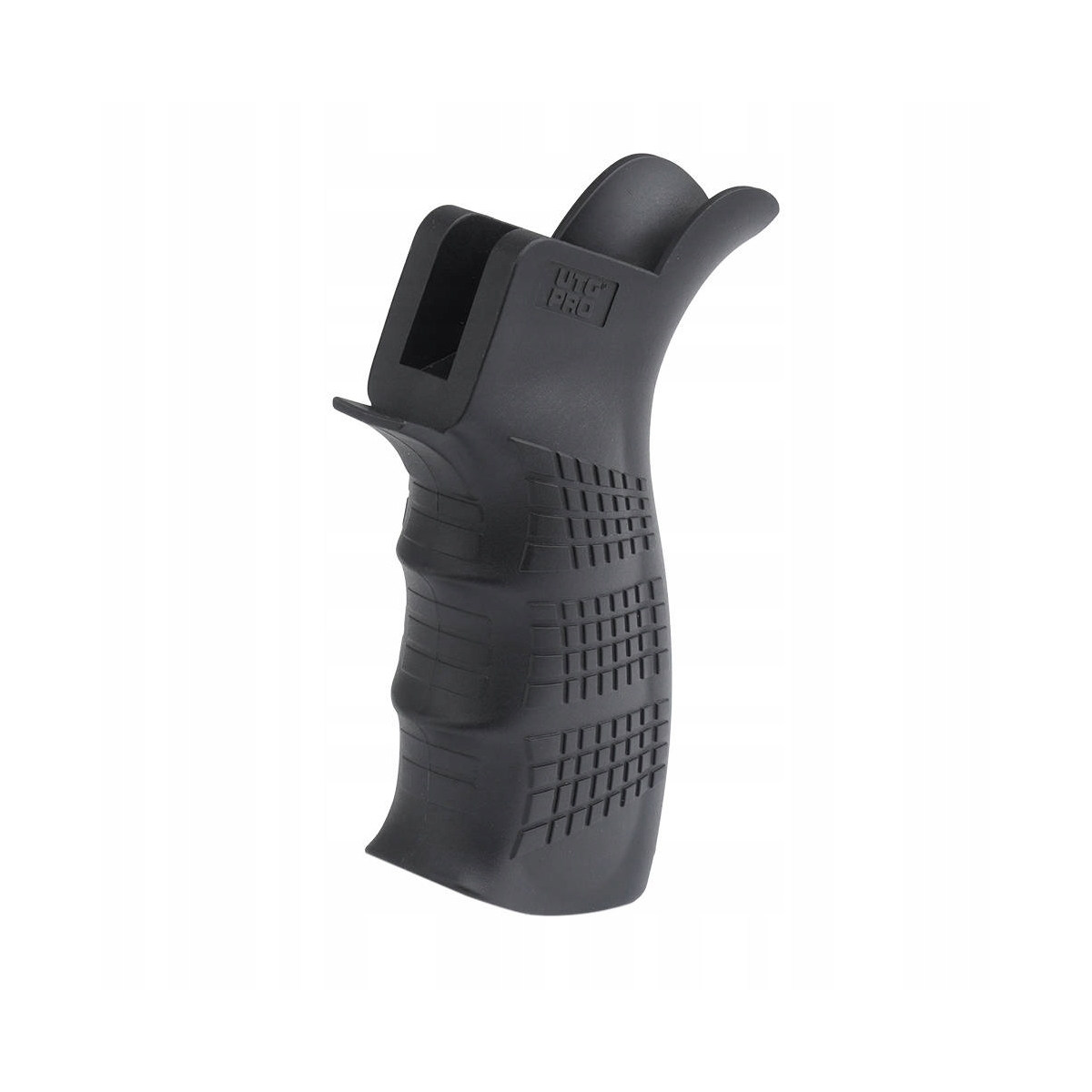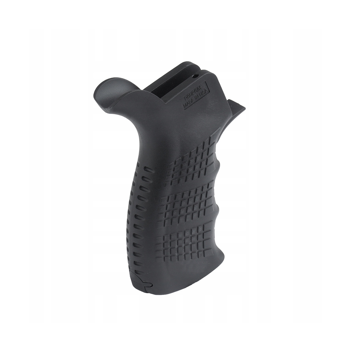 Wykonany z twardego, odpornego polimeru chwyt pistoletowy przeznaczony do AR-15. Posiada powiększoną ostrogę i pomniejszony kąt nachylenia, a newralgiczne punkty chwytu pokryte są antypoślizgową fakturą. Jest on zgodny z bezpiecznikiem obustronnym, posiada komfortowe wycięcia na palce oraz niewielki wewnętrzny schowek na akcesoria. Otwierana stopka chwytu skrywa schowek, idealny do przechowywania baterii lub akcesoriów do czyszczenia.
