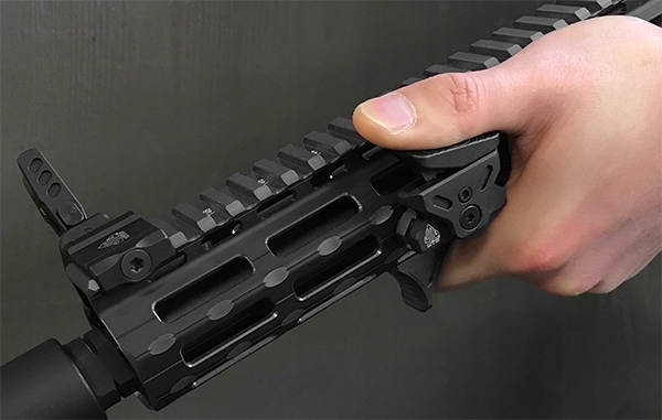 Podstawka pod kciuk Leapers UTG M-LOK pasuje do większości karabinków z łożem M-Lok o oktagonalnym profilu.