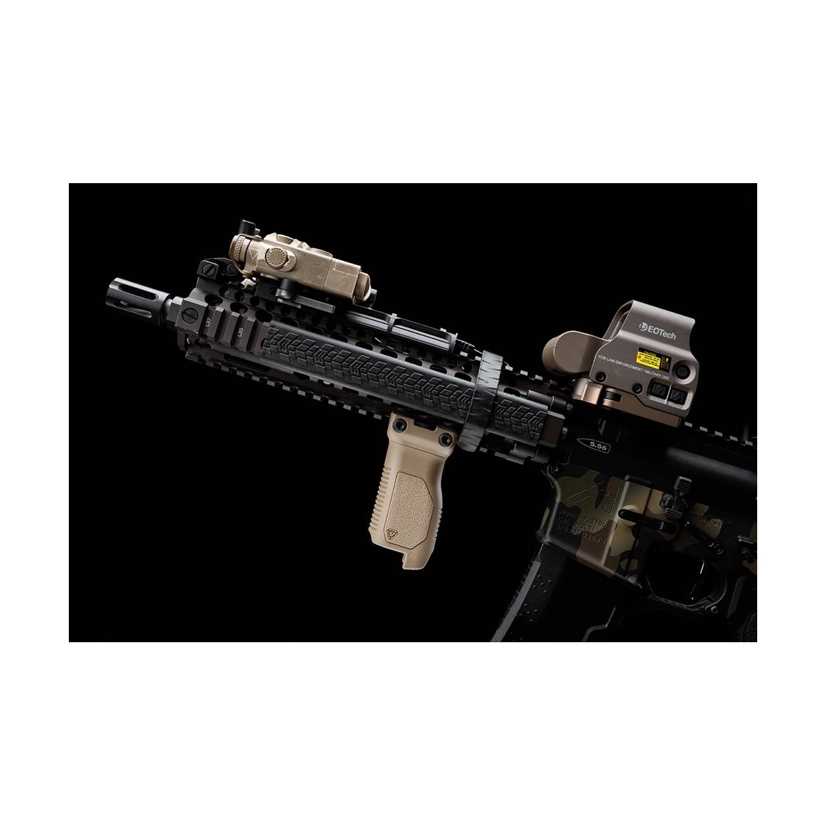 Na szczycie chwytu, przy śrubach montażowych do szyn Picatinny znajdują się otwory i nacięcia umożliwiające przeprowadzenie i zabezpieczenie przewodów. Umożliwia to wpuszczenie nadmiaru kabla do pustego wnętrza chwytu, i zabezpieczenie go w ten sposób, lub wygodne zamontowanie przełącznika żelowego na powierzchni chwytu.