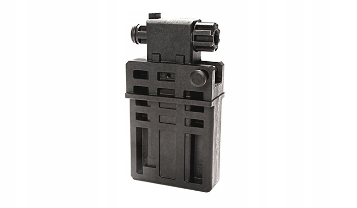 Część odpowiedzialna za montaż w imadle może być po obróceniu stosowana jako podstawka mocowana w gnieździe magazynka.