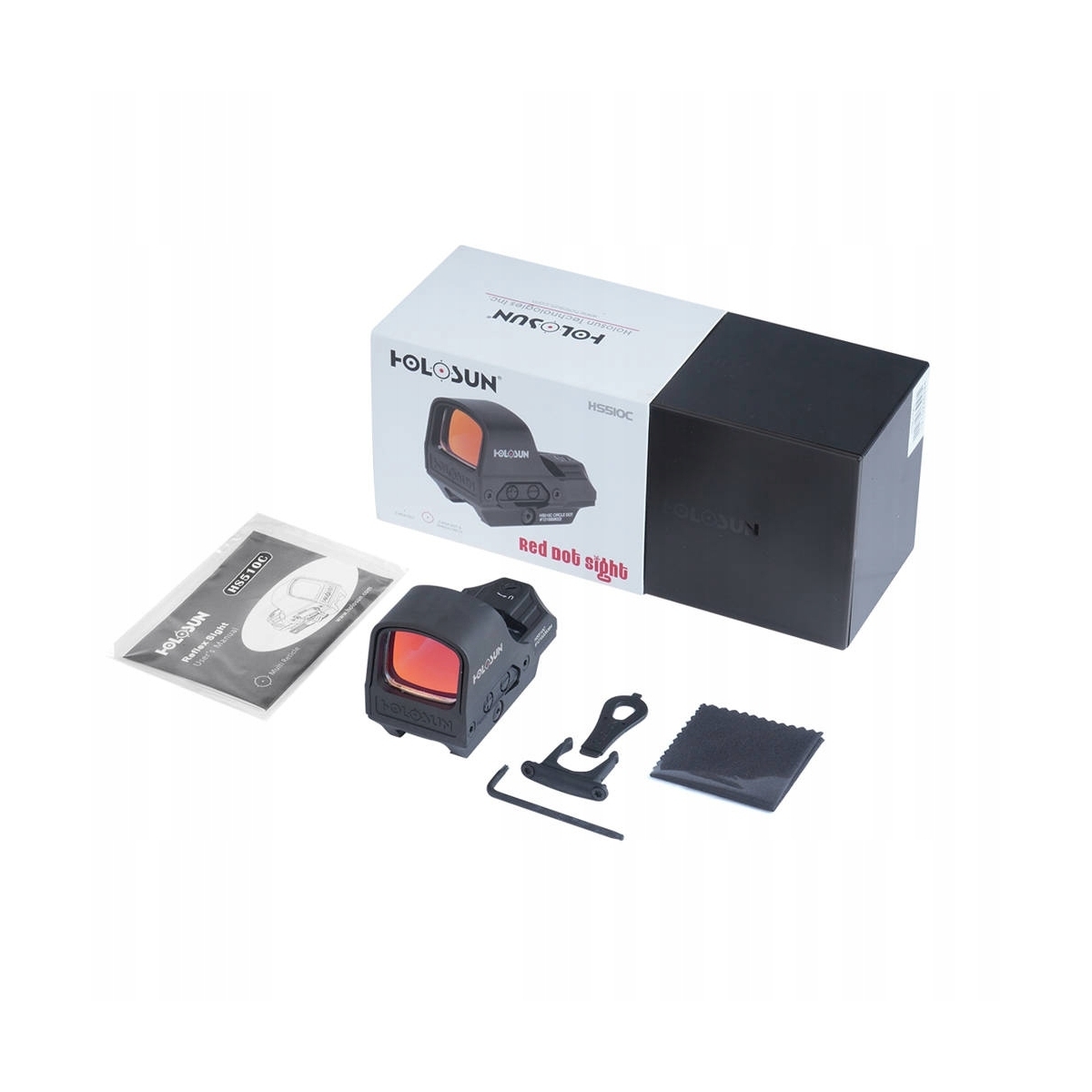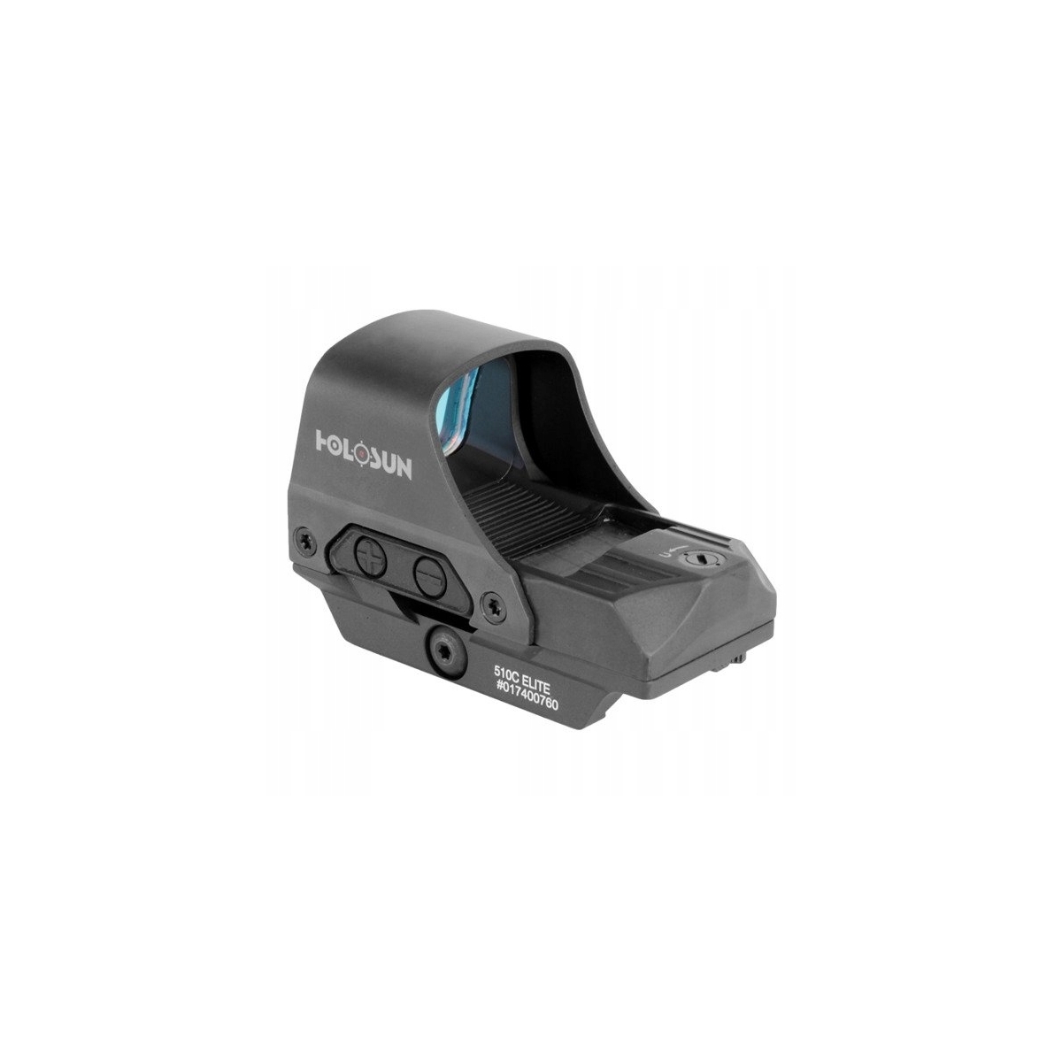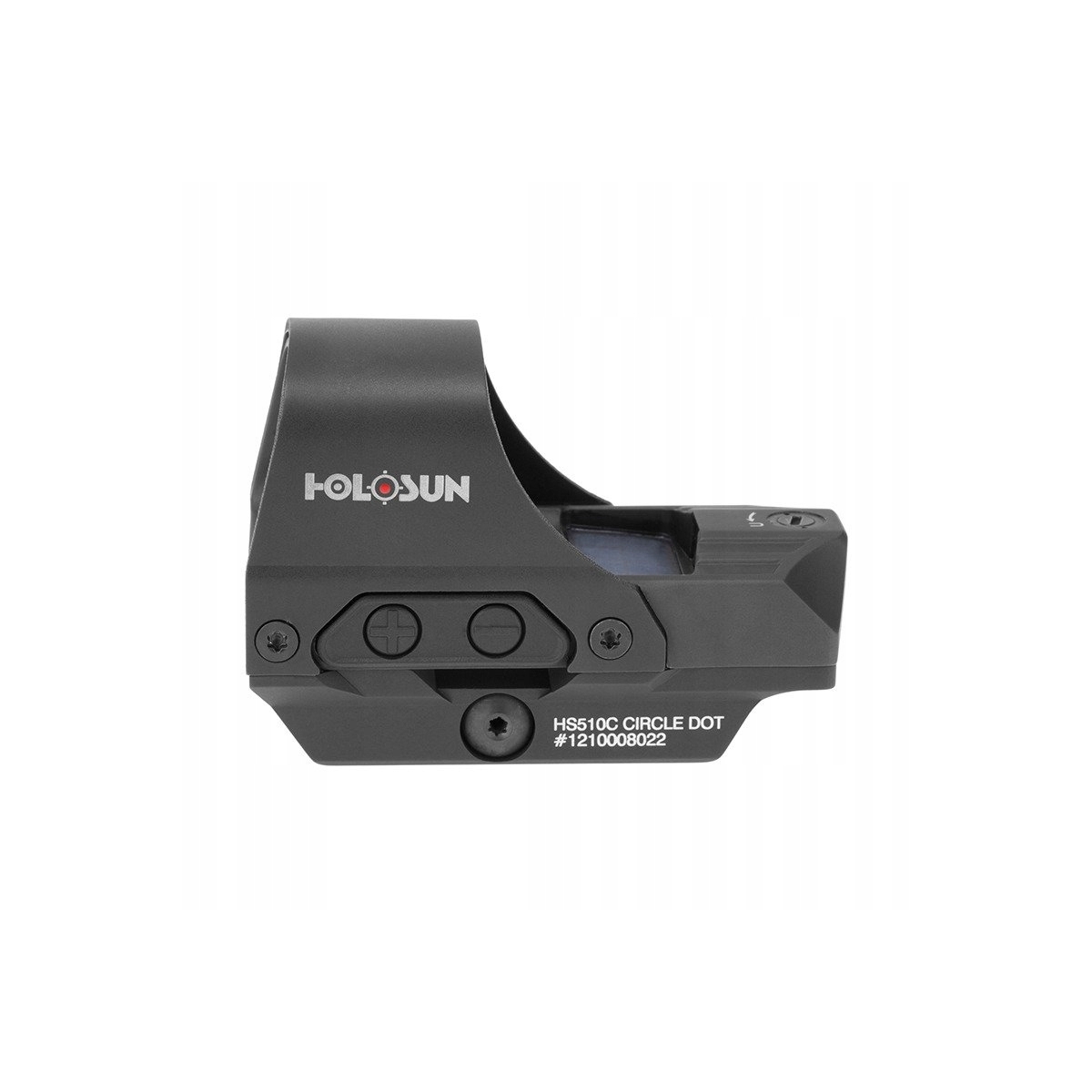 Celownik kolimator Holosun HS510C - przystosowany do broni długiej wyposażony w dodatkową osłonę optyki wykonaną z tytanu. Urządzenie charakteryzuje się wysoką wydajnością i długotrwałym funkcjonowaniem. Układ zasilany jest pojedynczą baterią 2032 o czasie działania do 50 000 h. Celownik został wyposażony w system soczewek, wielowarstwowo pokrytych powłokami odbijającymi. Obraz widoczny przez soczewkę jest klarowny, jasny i pozbawiony paralaksy. System Mutli Reticle pozwala na wybór kształtu punktu celowniczego: klasyczną kropkę 2 MOA, okrąg 65 MOA oraz obie z nich.