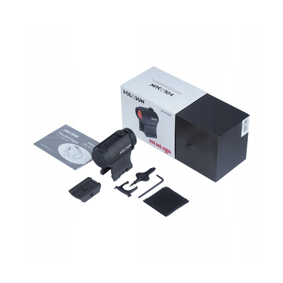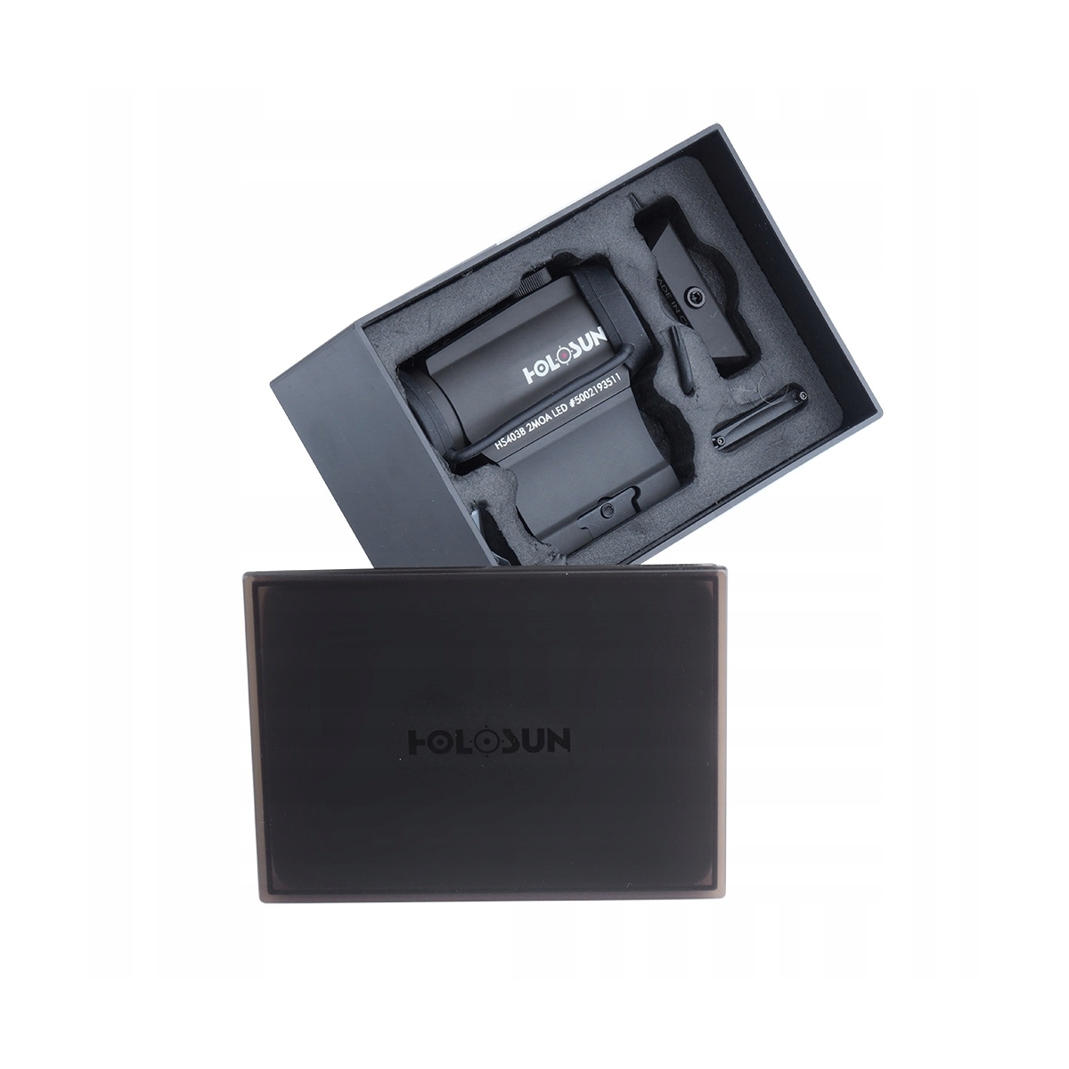 Celownik kolimator Holosun HS403B - z serii Micro Red Dot, który posiada dwa montaże w komplecie: niski i wysoki 1/3 Co-Witness. Jest to wersja z baterią 2032 o czasie działania do 50 000h umieszczaną w odkręcanej, wysuwanej tacce. Duża wydajność dzięki elektronicznemu układowi sterującemu z diodą LED. Posiada także system oszczędzania baterii - Shake Awake, który, w przypadku nieaktywności sprawia, że urządzenie automatycznie przechodzi w stan uśpienia. Do jego ponownej aktywacji wystarczy jedynie poruszyć bronią, na której został umieszczony.