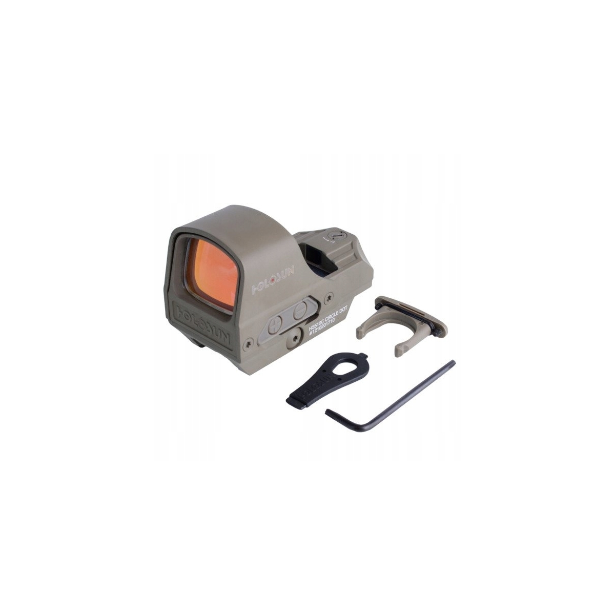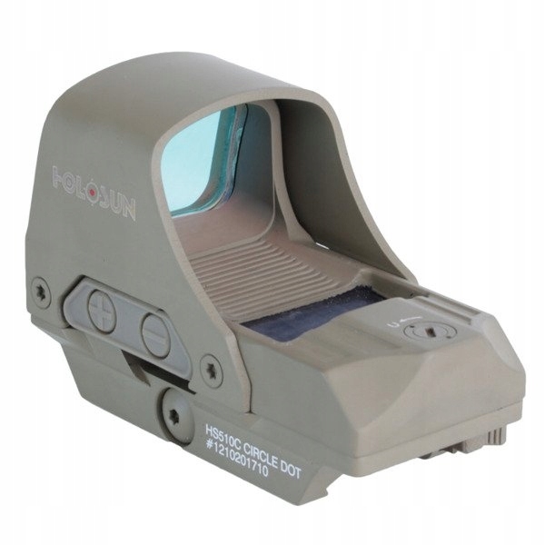 Celownik kolimator Holosun HS510C - przystosowany do broni długiej wyposażony w dodatkową osłonę optyki wykonaną z tytanu. Urządzenie charakteryzuje się wysoką wydajnością i długotrwałym funkcjonowaniem. Układ zasilany jest pojedynczą baterią 2032 o czasie działania do 50 000 h. Celownik został wyposażony w system soczewek, wielowarstwowo pokrytych powłokami odbijającymi. Obraz widoczny przez soczewkę jest klarowny, jasny i pozbawiony paralaksy. System Mutli Reticle pozwala na wybór kształtu punktu celowniczego: klasyczną kropkę 2 MOA, okrąg 65 MOA oraz obie z nich.