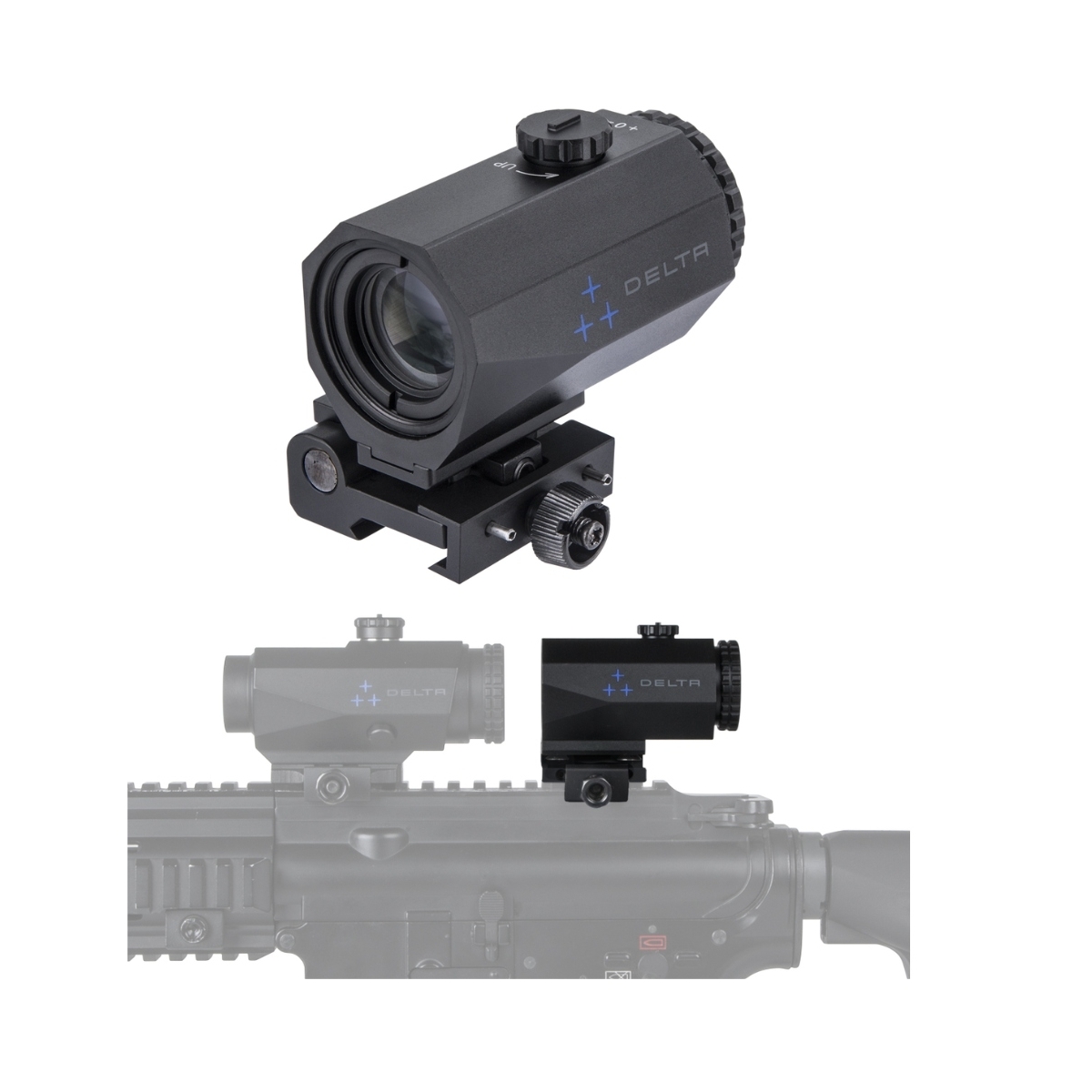 Urządzenie idealnie sprawdzi się również w współpracy z celownikami holograficznymi oraz z celownikami pryzmatycznymi. Umożliwia regulację azymutu dokonywaną bez narzędzi oraz regulację ostrości dioptrycznej w celu uzyskania precyzyjnego i ostrego obrazu.