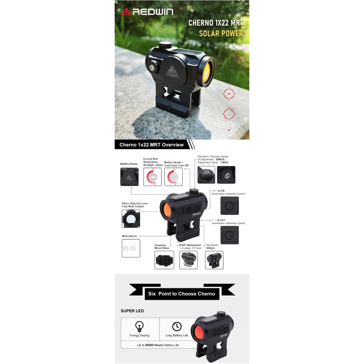 REDWIN Cherno 1×22 MRT - kolimator do montażu na szynie picatinny, celownik dla karabinków i strzelb.