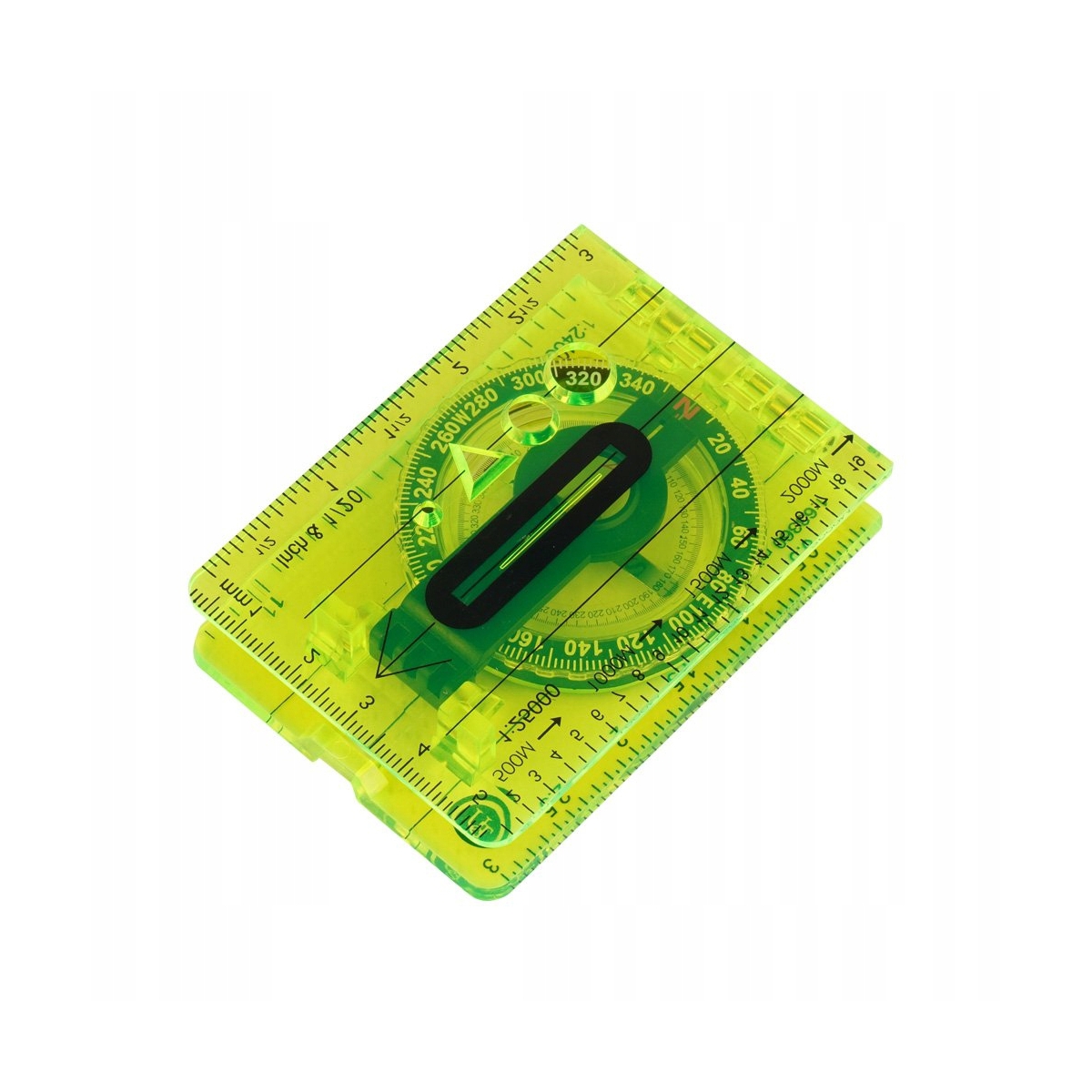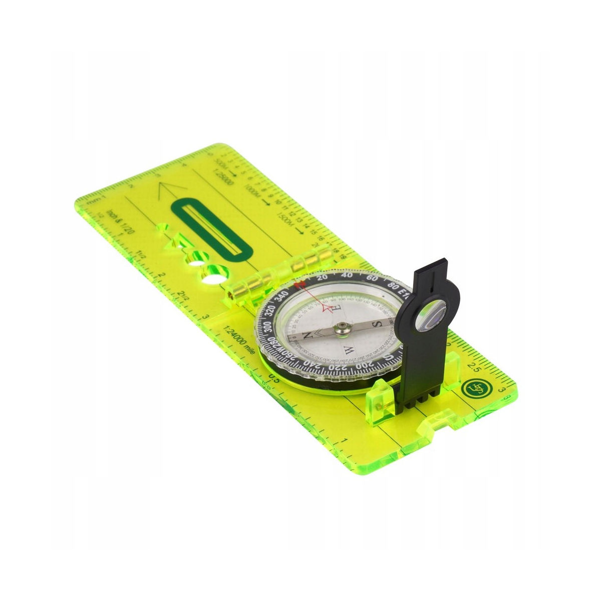Umieszczone na rozkładanym ramieniu szkło namiarowe pozwala na odczyt azymutu. Na podstawie umieszczono kilka skal do czytania mapy, linijkę w centymetrach i calach, oraz nadrukowaną nitkę celowniczą.