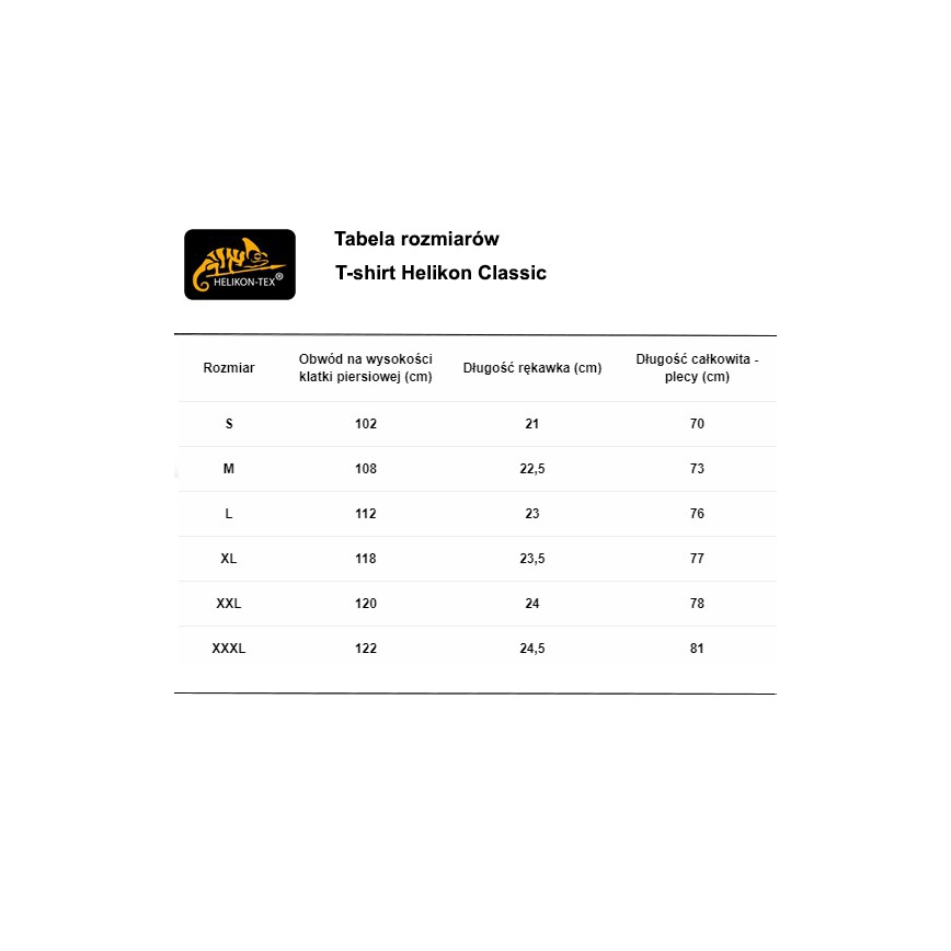 T-shirt Helikon Classic Army TS-TSH-CO-09 - tradycyjny bawełniany T-Shirt renomowanego producenta Helikon. Wykonany w 100% z czystej bawełny. Podstawowa warstwa ubioru – najbliższa skórze. Krój prosty, wygodny.