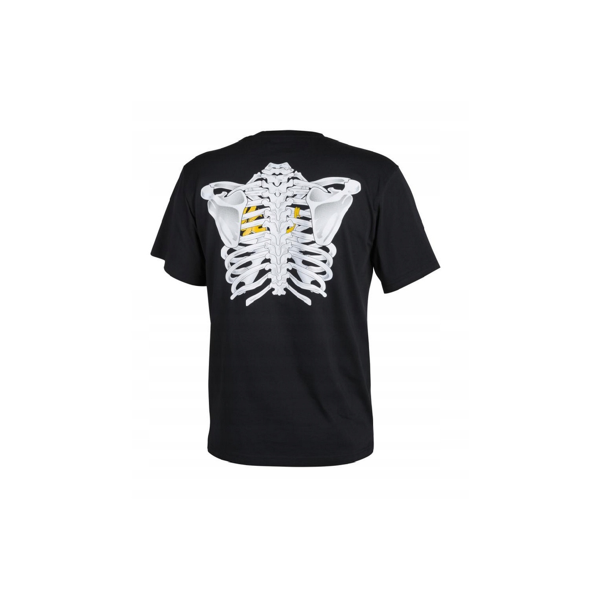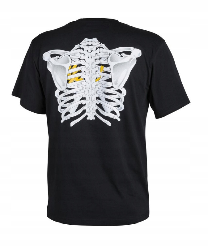 Bawełniany T-shirt z dużym nadrukiem przedstawiającym szkielet klatki piersiowej a w niej kameleona (stylizowane logo producenta).