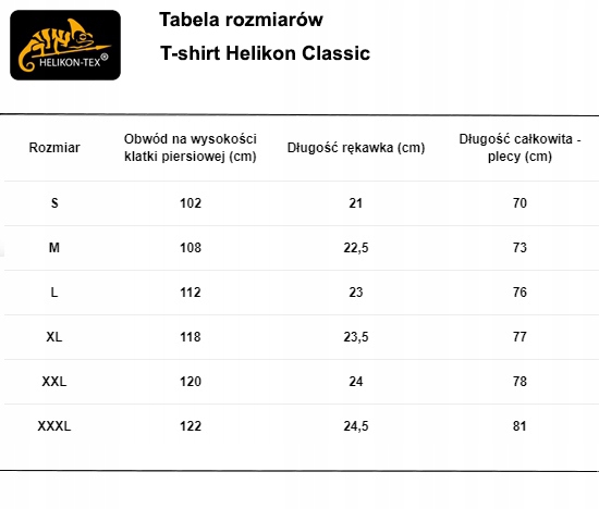 T-shirt Helikon Classic Army TS-TSH-CO-60 - tradycyjny bawełniany T-Shirt renomowanego producenta Helikon. Wykonany w 100% z czystej bawełny. Podstawowa warstwa ubioru – najbliższa skórze. Krój prosty, wygodny.