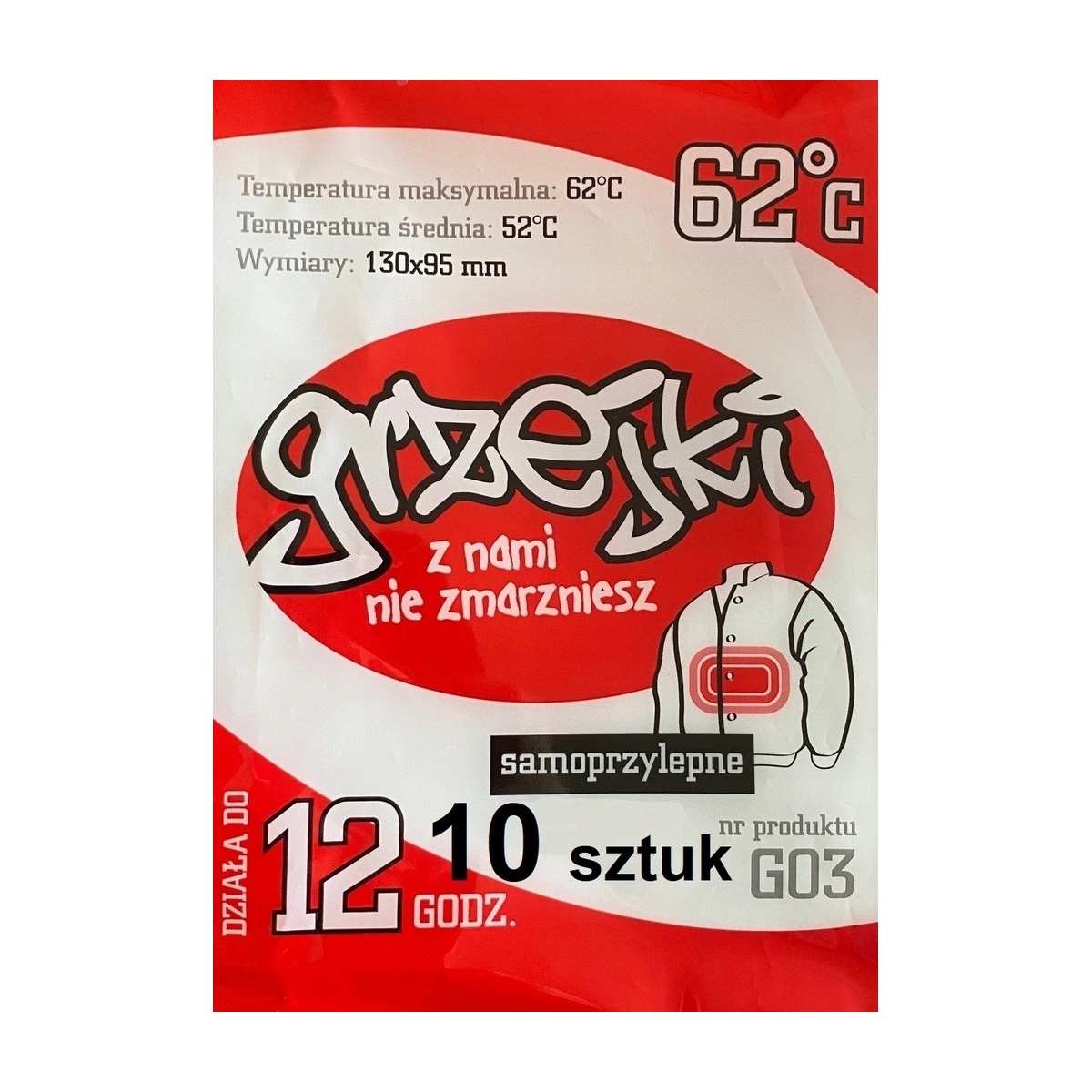Ogrzewacz chemiczny do ciała rąk Grzejki snowboard g03 10 szt