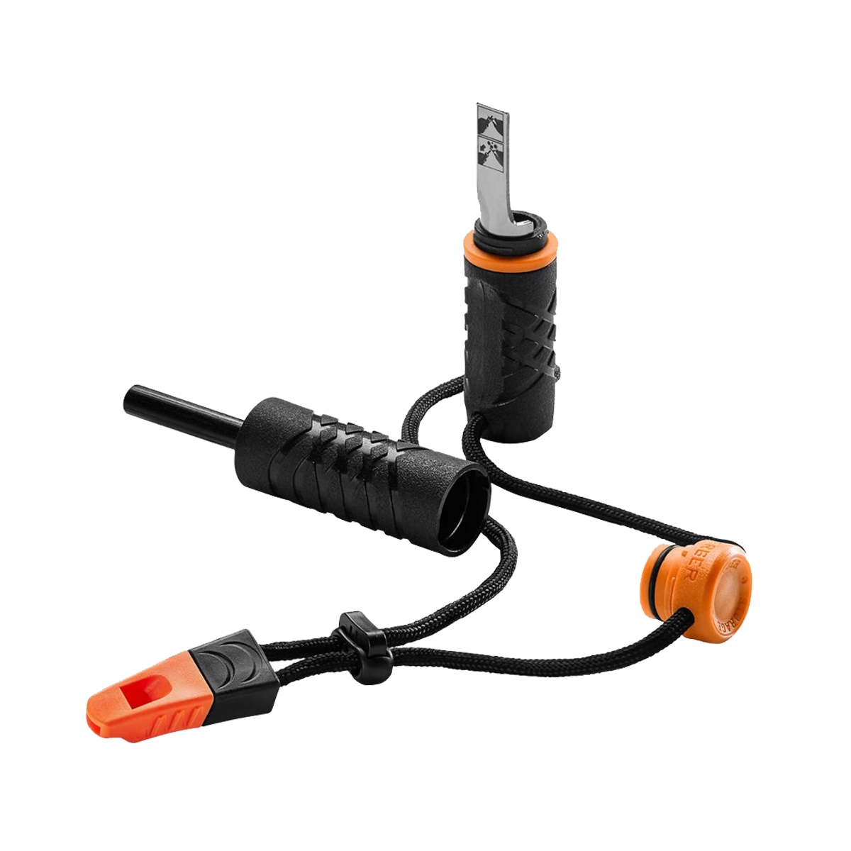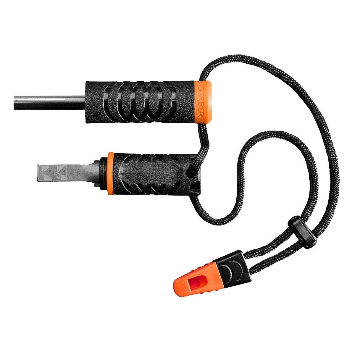 W komplecie znajduje gwizdek ratowniczy, przytroczony do krzesiwa za pomocą nylonowej linki.