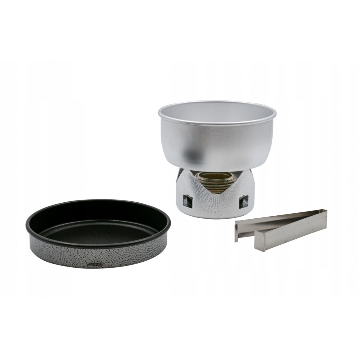 Trangia Kuchenka spirytusowa z zestawem T/28-T - Turystyczny zestaw szwedzkiej marki TRANGIA. Fantastyczny wybór do gotowania na świeżym powietrzu. Mini Trangia jest jest to komplet zawierający patelnię, rondel, uchwyt oraz palnik spirytusowy. Powłoki nieprzywierające stosowane w naczyniach dla naszego bezpieczeństwa są wolne od szkodliwych związków.