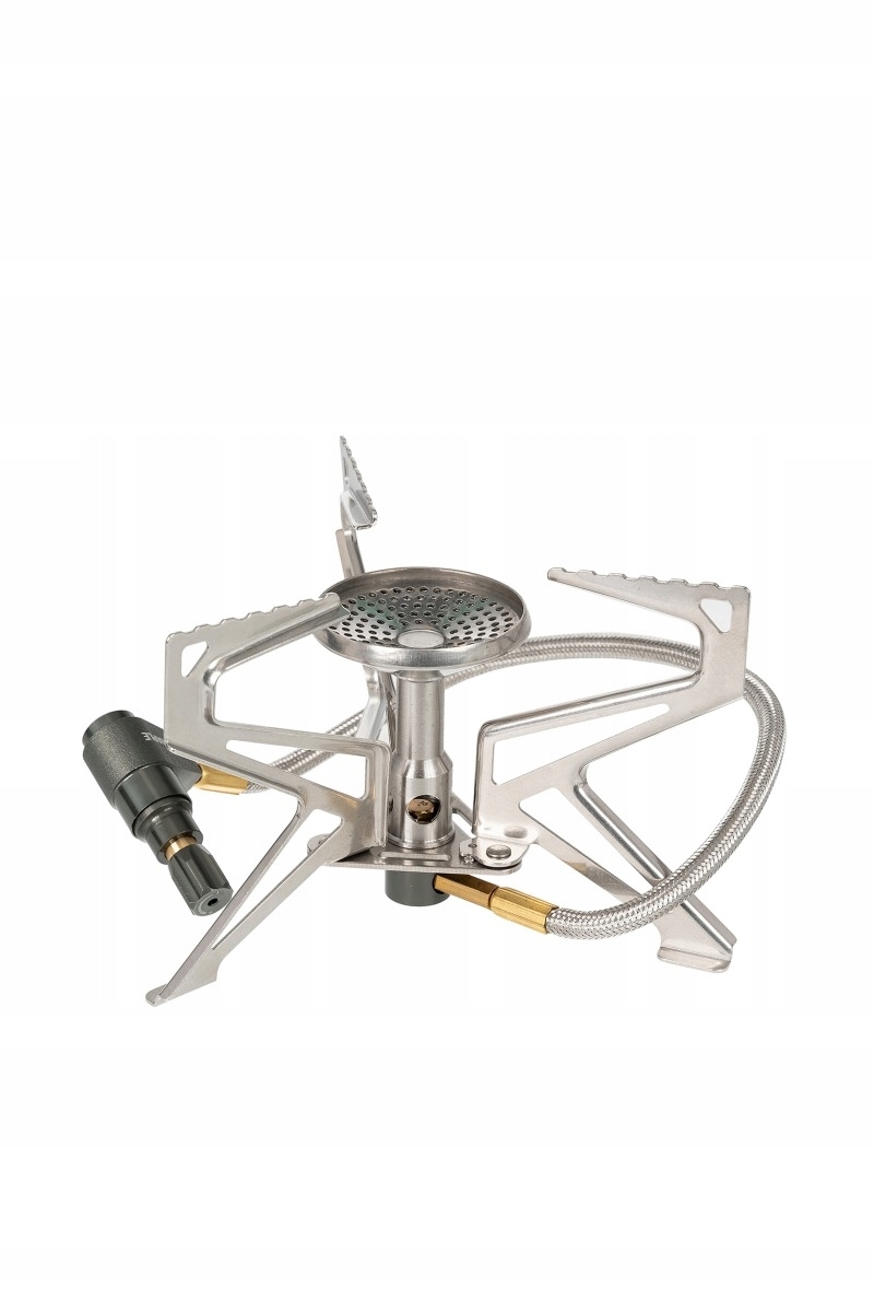 Palnik ma moc 2900 W. Z gwintowanym kartuszem gazowym łączy się przy pomocy wężyka, co ułatwia rozłożenie kuchenki. Składane nóżki kuchenki zapewniają stabilność całego systemu także na nierównym gruncie. Rozkładane ramiona pozwalają stabilnie oprzeć garnki, czajniki i inne naczynia o różnej wielkości, dzięki czemu przygotowanie posiłku jest bezpieczne.