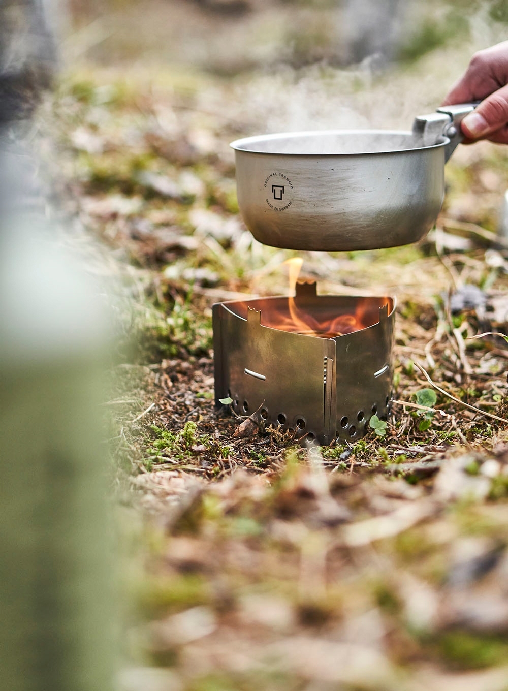 - Tworzy bezpieczną, stabilną podstawę dla naczyń turystycznych o średnicy powyżej 10 cm.
