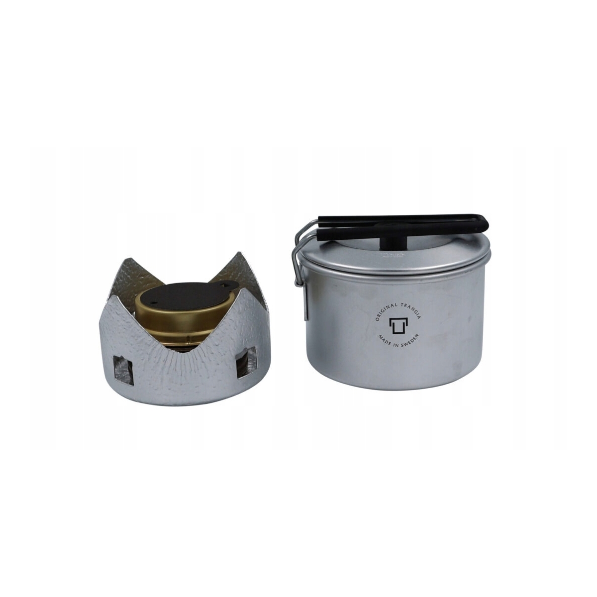 - W zestawie palnik spirytusowy, osłona przeciwwiatrowa, kubek T-Cup z pokrywką i uchwytem