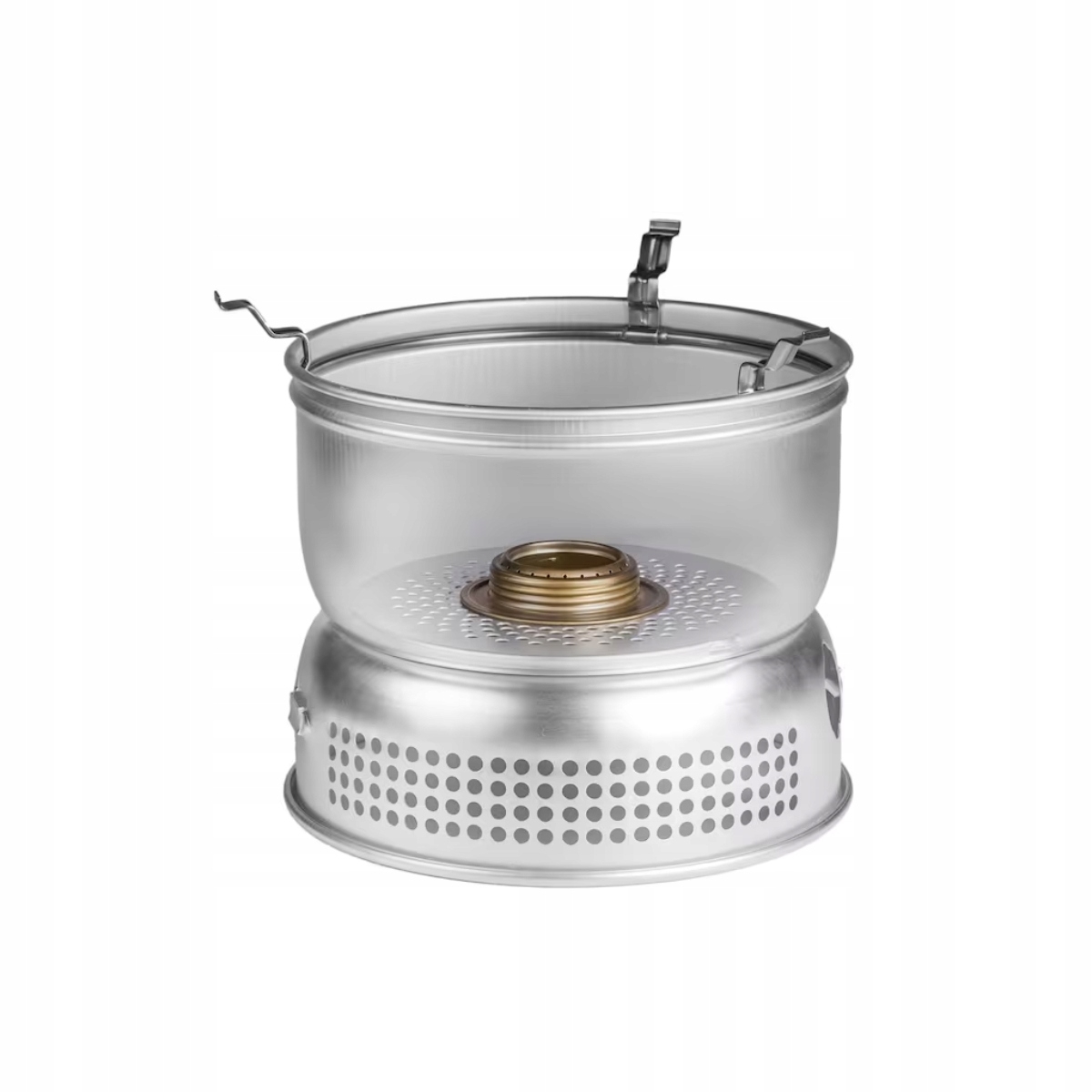 - Niezawodny Palnik Spirytusowy: Sercem zestawu jest palnik spirytusowy Trangia B25 (wykonany z mosiądzu). Charakteryzuje się prostą i bezawaryjną konstrukcją, która gwarantuje skuteczne gotowanie nawet w trudnych warunkach atmosferycznych (np. silny wiatr, niskie temperatury). Paliwem jest spirytus metylowy (np. Sinol).