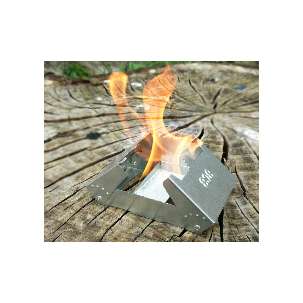 Po rozłożeniu kuchenki ścianki tworzą ruszt oraz ochronę przeciwwiatrową dla paliwa. Ścianki można ustawić w czterech położeniach, dzięki czemu z łatwością można dostosować kąt ścianek do naczynia.